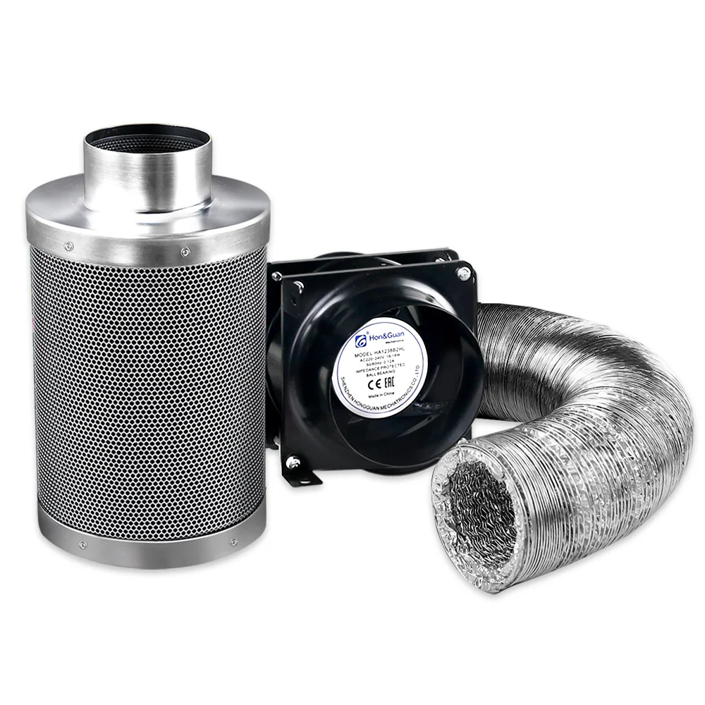 Comprising a 6" Ventilation Fan, 6" Active Carbon Filter and 5m Aluminium Ducting, the Ventilation Kit is designed to provide pure and clean air for your plants at all times. The Fan features high impact polycarbonate blades that deliver ample airflow in the grow tent, through the carbon filters and to cool the light reflector. It also works silently and efficiently. The Carbon Filter is manufactured with a fine mesh for the outer and internal layer and packed with activated charcoal in between. The Filter absorbs all nasty odours and pollens that float through the air or emitted from your plants. Not least, the 5m heavy-duty dual layer Aluminium Ducting is fire-resistant and allows for easy connection without any special tools.