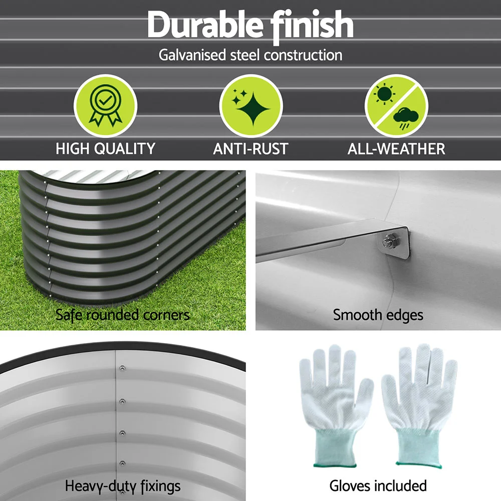 Plan to grow your own greens? Carrots, radishes, lettuce, spinach, onions, tomatoes or strawberries, our Gavlanised Raised Garden Bed can help to grow them all easily. Made of quality SGCC steel with epoxy powder coating, our galvanised raised garden bed has a low reaction against chemicals used for planting and is totally rustproof. Its 0.5mm thickness means extra stability and edges ensure that it is safe to use too. The garden bed is easy to put together and durable in every weather condition. Set it up, add in the soil, then the seeds or saplings and you are good to have a great fruit and vegetable patch of your own. Better still, get a few sets and you'll be a happy home farmer with a rich harvest in no time. Get yours today.