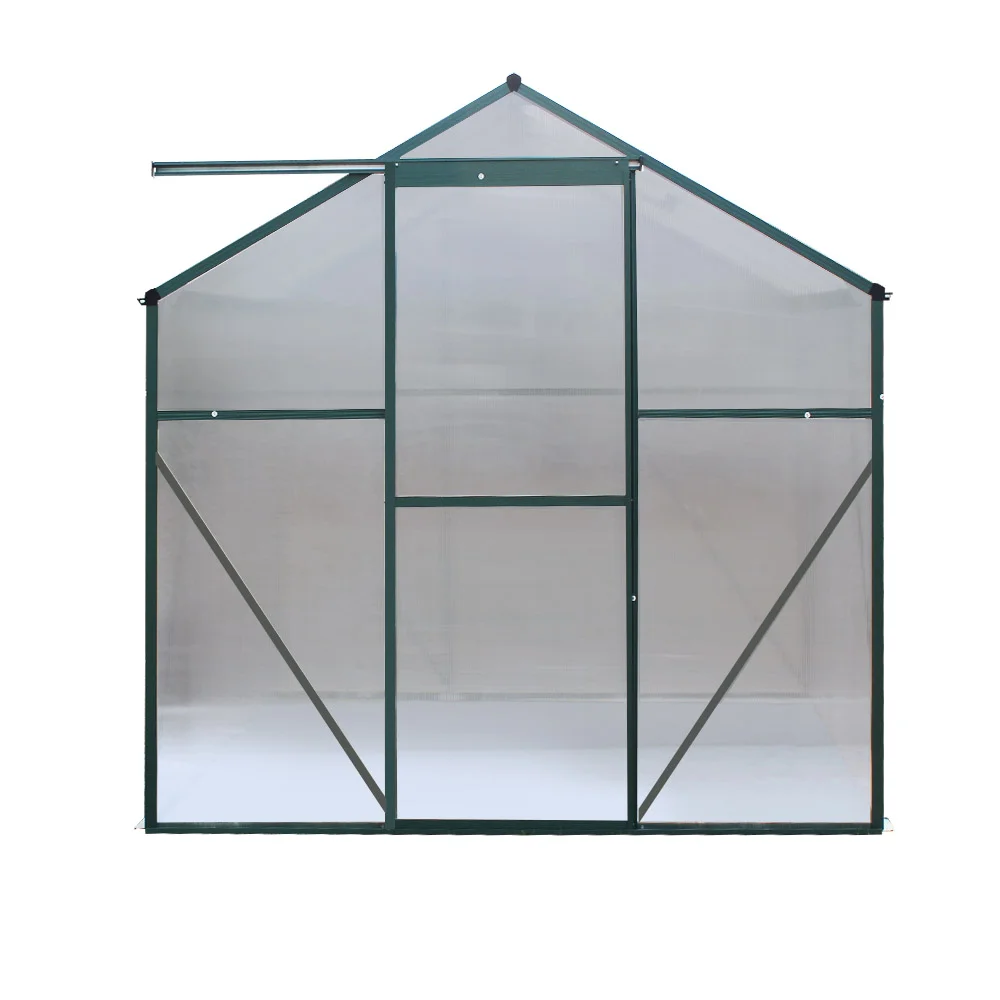 Boasting a generous 6.64m capacity, it accommodates numerous plants. The structure is fitted with 4mm twin-wall UV-resistant polycarbonate panels, allowing for 90% light transmission while protecting against plant burn. Its sturdy triangular aluminium design, adjustable roof vents for ventilation, and effective drainage system create ideal growing conditions.