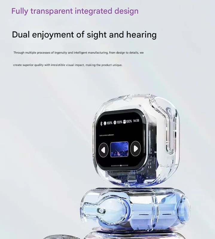 Experience the next generation of wireless audio with these revolutionary TWS earbuds, featuring a stunning full-color LCD touchscreen directly on the charging case. This all-in-one hub puts total control at your fingertips, blending a futuristic transparent design with powerful, immersive sound. Manage calls, music, and a host of smart features without ever touching your phone.