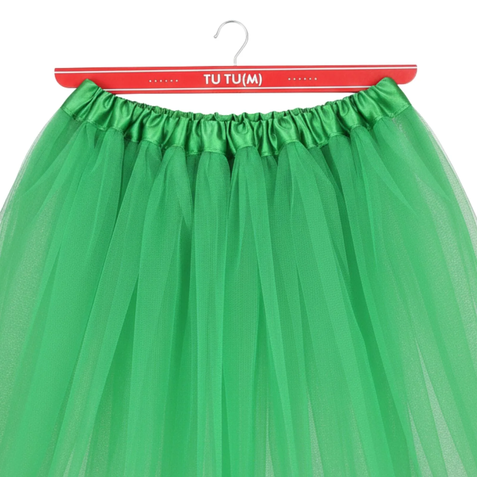 Bring bold style and volume to your look with this green tulle tutu. Whether you're channeling your inner ballerina, creating an 80s-inspired neon outfit, or just dressing up for a party, this versatile tutu is perfect for any occasion. Its three layers of tulle add just the right amount of flair, while the elastic waistband ensures a comfortable fit.