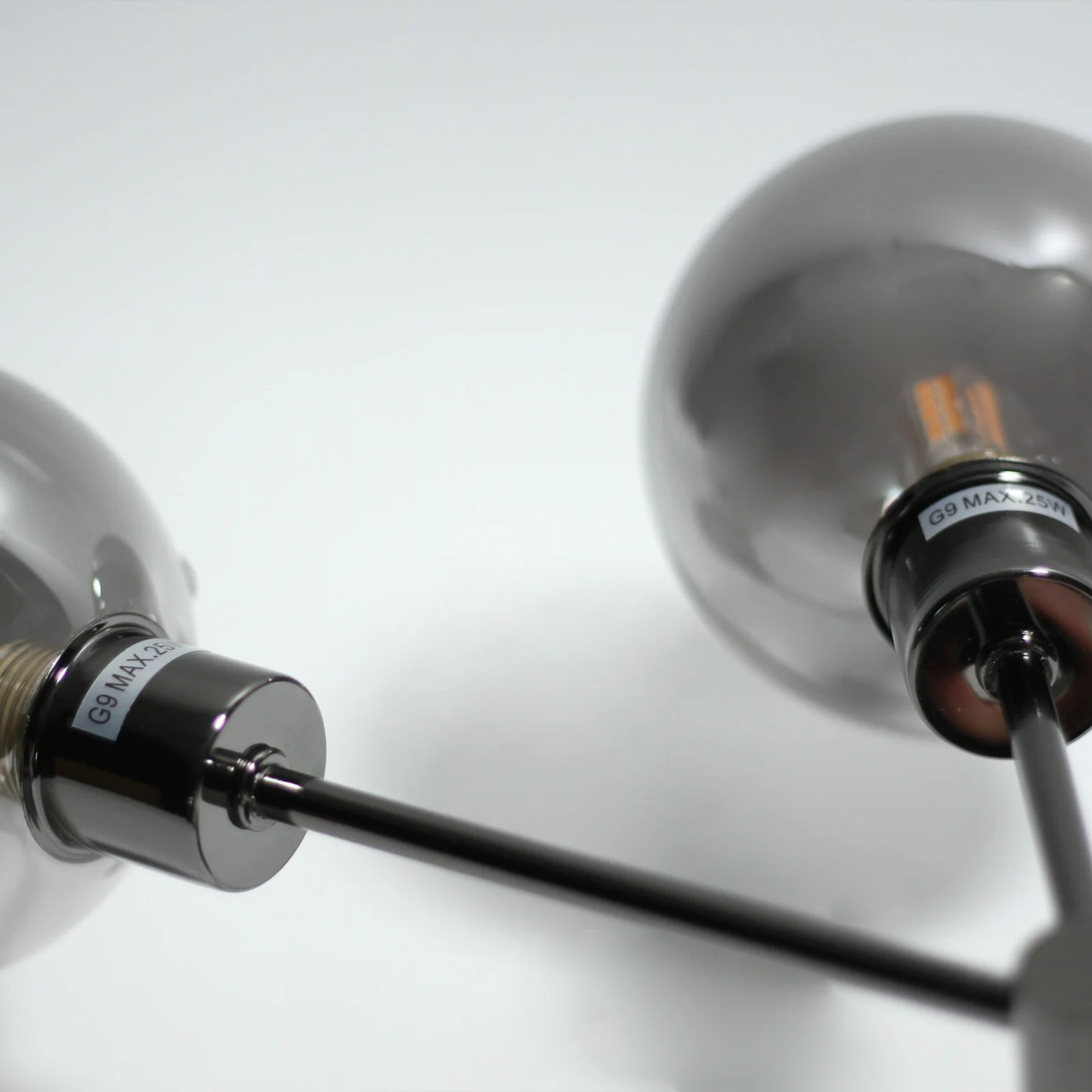 The Grette Range offers three modern fittings that all encompass the same contemporary features. The polished black chrome rigid piping, bulb holder and base are partnered faultlessly with smoked glass spheres, bringing sophistication into a home.