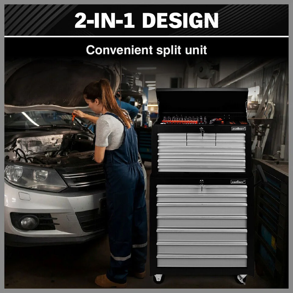 Made of powder coated steel, our tool trolley is designed to keep your valuable tools in place and has 15 drawers specifically designed to meet a variety of tool sizes.