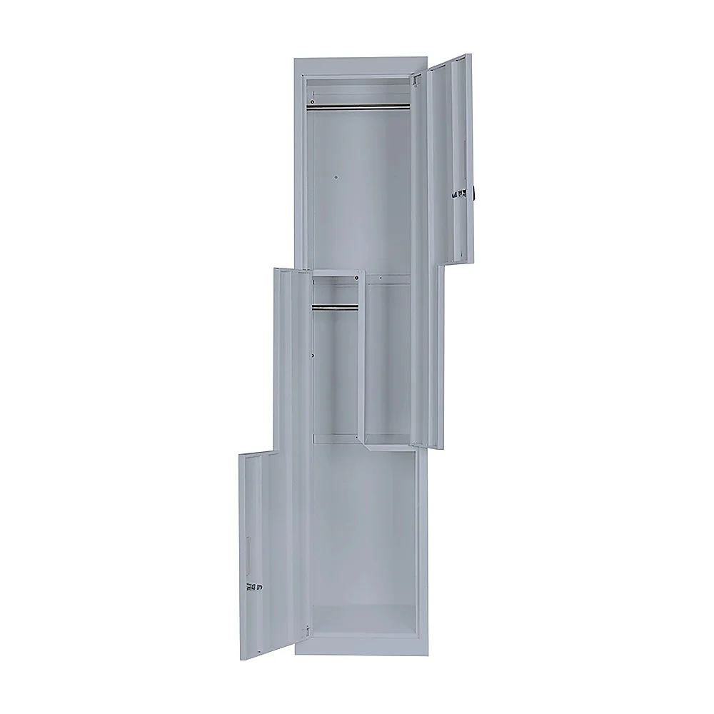 Our L-shaped, two-door vertical locker is a specially designed space-saving solution that provides the functionality for clothes and items storage, for 2 users. It's the ideal solution for personal use in the home or an apartment; or stack several units together for business needs like in schools, gyms, or work areas.