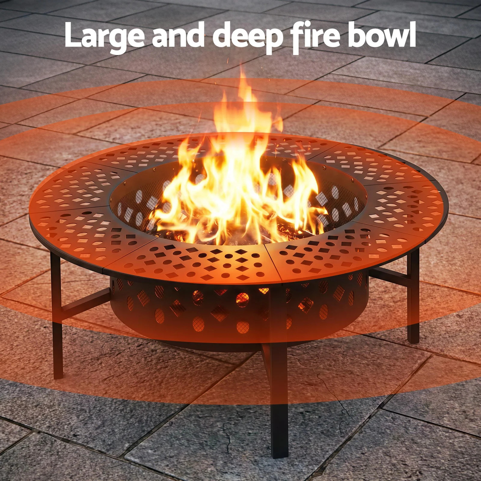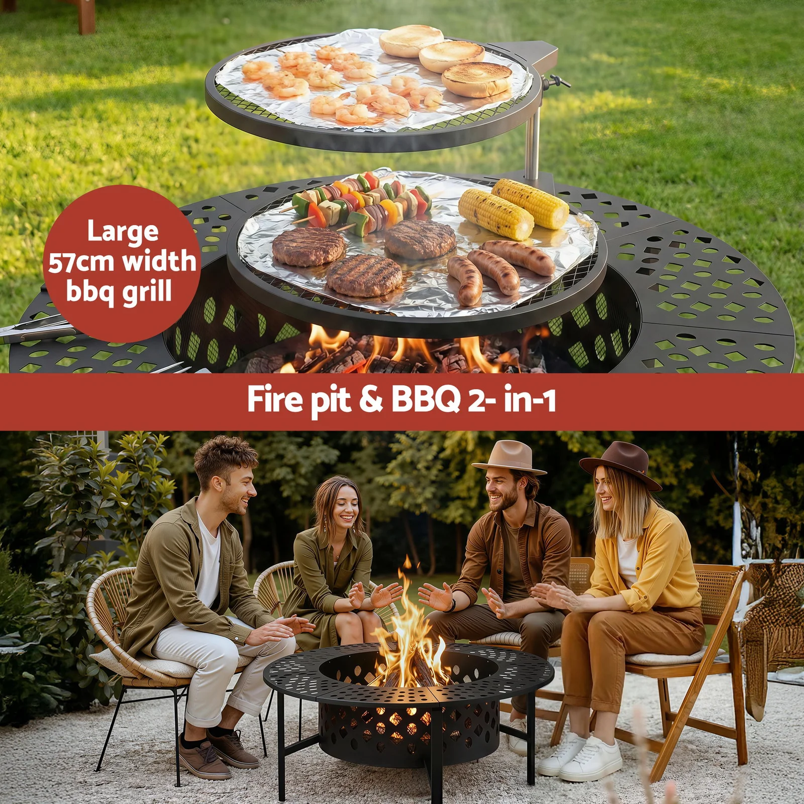 The Grillz 3-in-1 Fire Pit is your ultimate outdoor centerpiece. Transform your garden, yard, or patio with a roaring bonfire, a versatile barbecue station with height-adjustable 360° swivel grills, or a charming round table for 6-8. Crafted for durability and safety, it features a cut-out design, spark-resistant meshes, a high-temperature powder-coated finish, and a stable 4-leg base. Complete with a lid, tabletop, fire poker, and rain cover, Grillz offers year-round warmth, flavor, and fellowship. It's the perfect, thoughtful gift for creating unforgettable moments.
