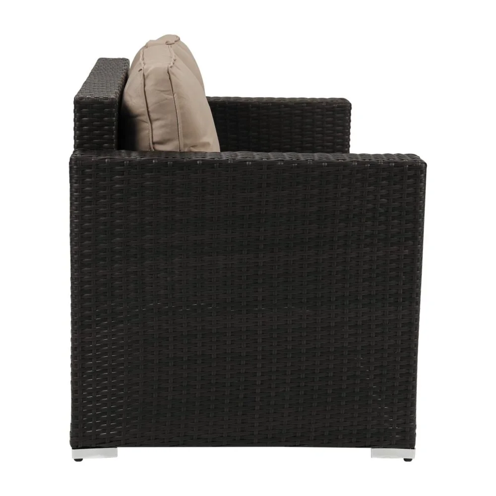 This furniture set is selected from high-quality hand-woven polyethylene rattan. The rattan is tightly wrapped around a solid metal frame. It shows elegance and flavor without losing its toughness and durability. The combination of sturdy construction and thick, comfortable cushions creates a long-lasting and pleasurable sitting and sleeping experience. The cushions are designed with removable covers for easy cleaning and maintenance.