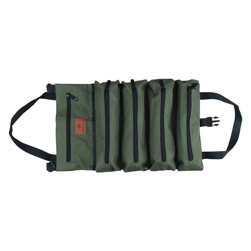 Keep your tools organized, secure, and ready to go with this versatile and durable Tool Roll Up Bag. Made from heavy-duty canvas fabric, this organizer features multiple zippered pockets to securely store a wide range of tools such as wrenches, screwdrivers, pliers, and other small accessories. The smart roll-up design allows for compact storage and easy transport. When rolled up, it forms a convenient tote bag with sturdy carry handles and secure buckle closures. Some models also include a detachable shoulder strap for added carrying comfort. With features like reinforced metal grommets for hanging on a pegboard, this tool bag is an excellent solution for electricians, mechanics, plumbers, carpenters, and DIY enthusiasts.