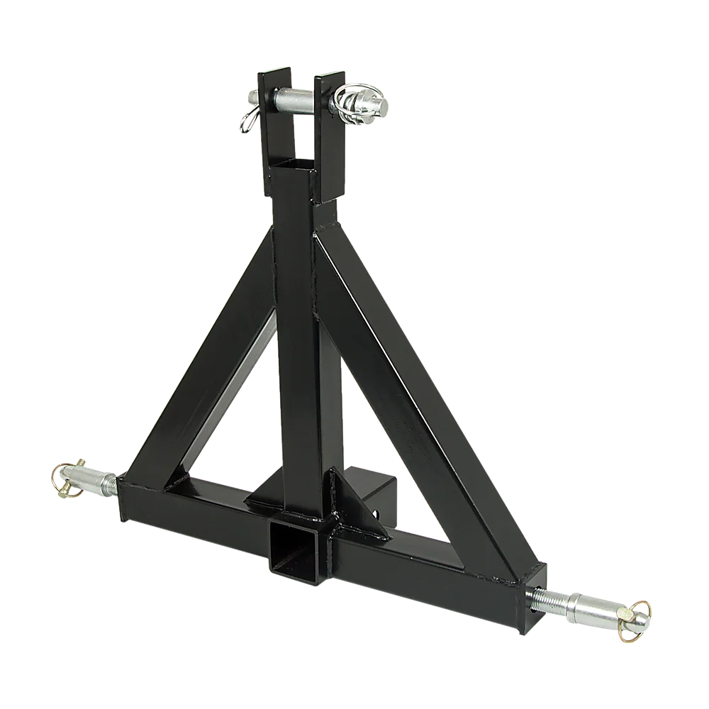 Whether you're in the trades, agriculture, or another industry, you need your hauling equipment to be tough enough to pull heavy loads and last for years, even under heavy use. With this three-point hitch by Randy Travis Machinery, you'll have an equipment transportation option that you can depend on no matter how hard the job gets. Made from extra-strong powder-coated carbon steel, this hitch is as strong as they come and resists the corrosion that often occurs on outdoors equipment. Its proprietary bottom pin design makes it compatible with smaller tractors as well as larger ones. Its 5-cm receiver accommodates a wide range of trailer types, making it a versatile piece of equipment.