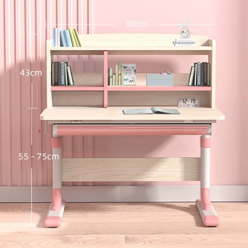 This Ergonomic Multi-Function kid\'s desk can be your child\'s ideal learning partner! This Kids writing table is made of fruitwood, height is adjustable from 55-75 cm for the desktop with locking rotary knobs to grow with your child. And the desktop can be tilted from 0-60??angle to protect their eyesight and being Drafting Table. Kids can store their various stationery on the extra bookshelf or in the embedded pull-out drawer. The rotatable rack offers a proper distance and angle for reading books.