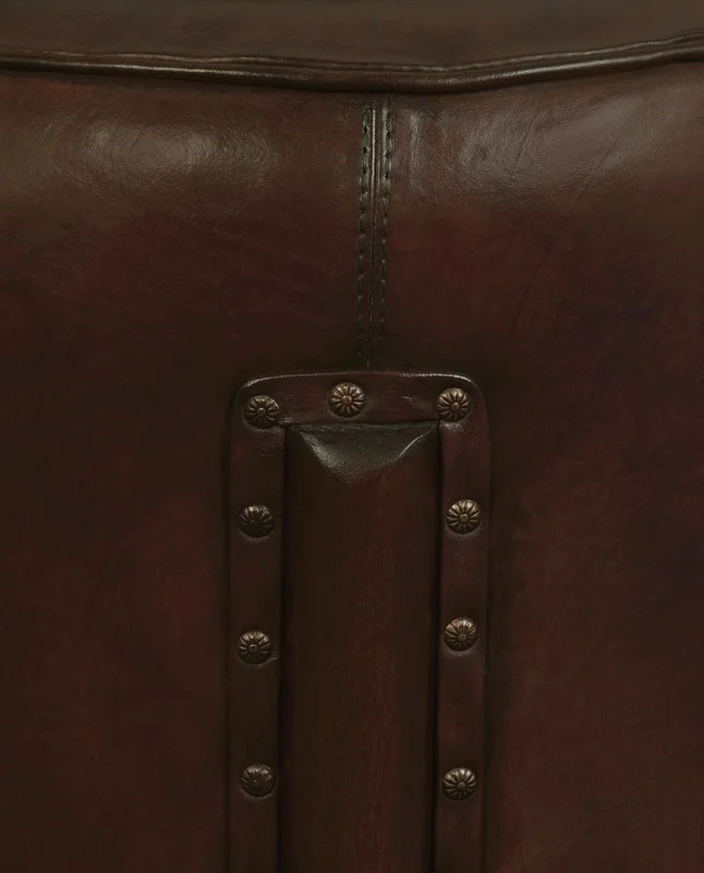 Elevate your living space with the refined elegance and timeless charm of the Heritage Genuine Leather Ottoman/Footstool. Crafted with the utmost care and attention to detail, this exquisite piece combines luxurious genuine leather with the robust beauty of solid mahogany timber, resulting in a captivating addition to any room. The Heritage Ottoman showcases a sleek, cylindrical design, enveloped in rich, supple leather that exudes sophistication and warmth. The deep, dark tones of the leather harmonize beautifully with the mahogany legs, creating a cohesive look that enhances both modern and classic interiors. Inspired by vintage charm, this ottoman features brass stud accents that add a touch of rustic elegance. The meticulous stitching and high-quality craftsmanship ensure durability and longevity, making this piece a worthy investment for your home. Measuring 44.0 x 44.0 x 49.0 cm, the Heritage Ottoman is perfectly sized to serve as a comfortable footstool, a stylish accent piece, or even additional seating when needed. Its versatile design and rich materials make it a standout addition to your living room, bedroom, or study. The Heritage Genuine Leather Ottoman/Footstool arrives fully assembled, allowing you to immediately enjoy its luxurious comfort and aesthetic appeal. Let this exquisite piece transform your space, providing both functionality and a touch of timeless beauty that will be cherished for years to come.