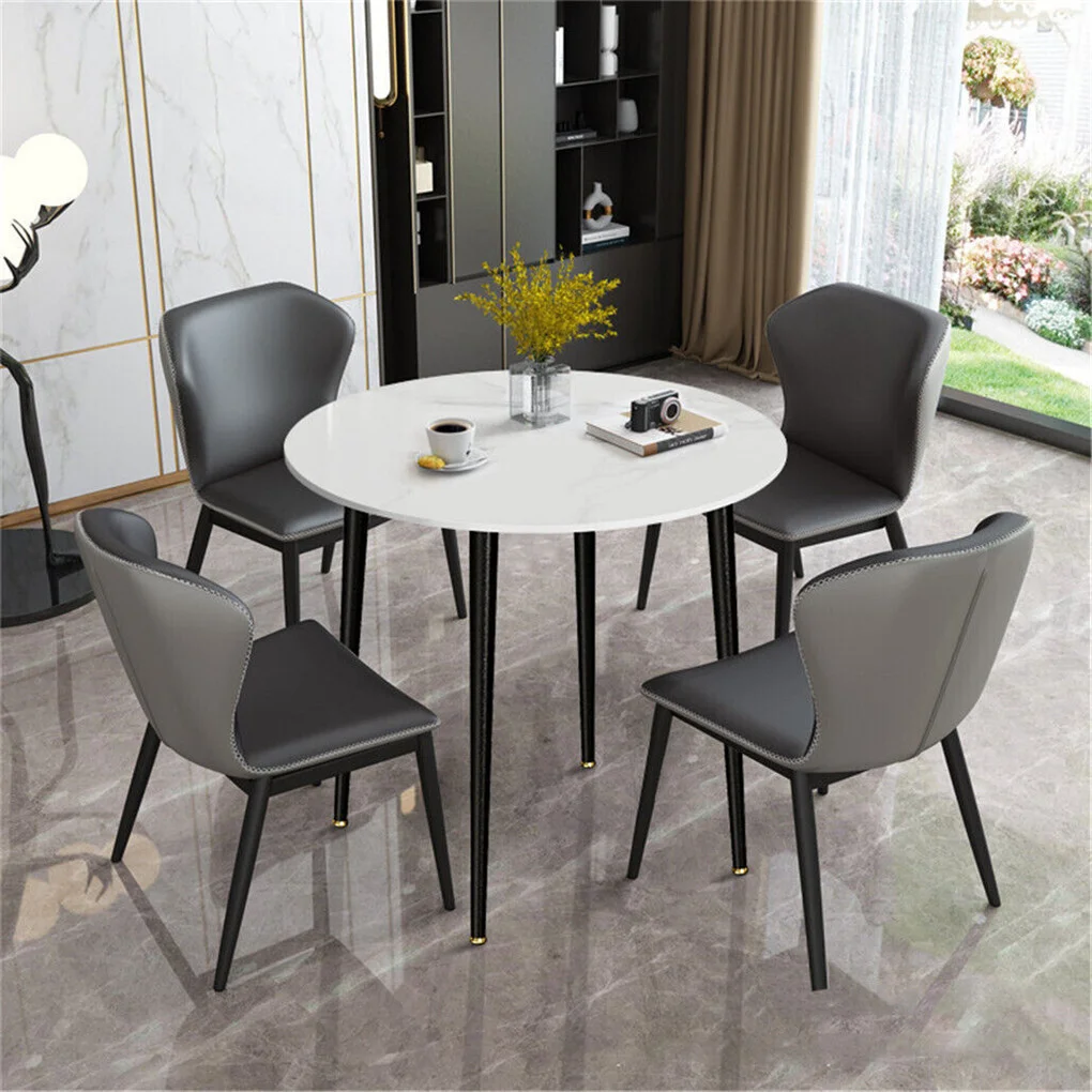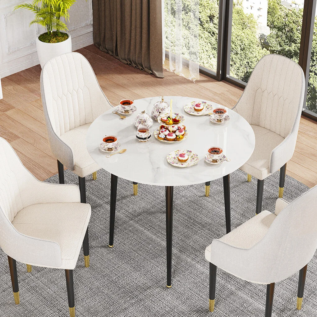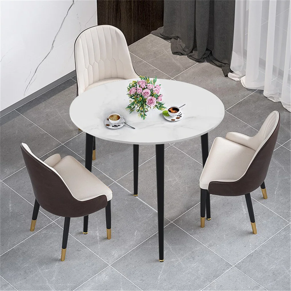 This modern round dining table is a decorative and functional centerpiece for any dining space, offering a refined and contemporary aesthetic.