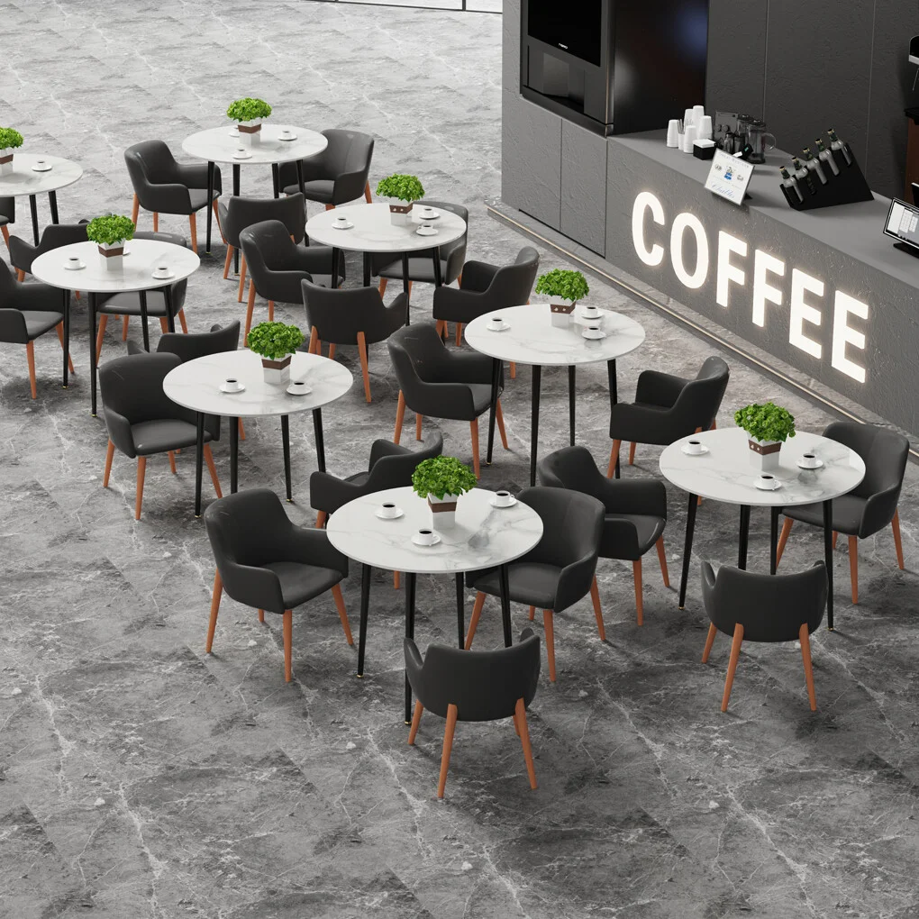 The sintered stone tabletop is stain-resistant and scratch-resistant, unaffected by heat or cold, and suitable for direct contact with food without releasing harmful substances.