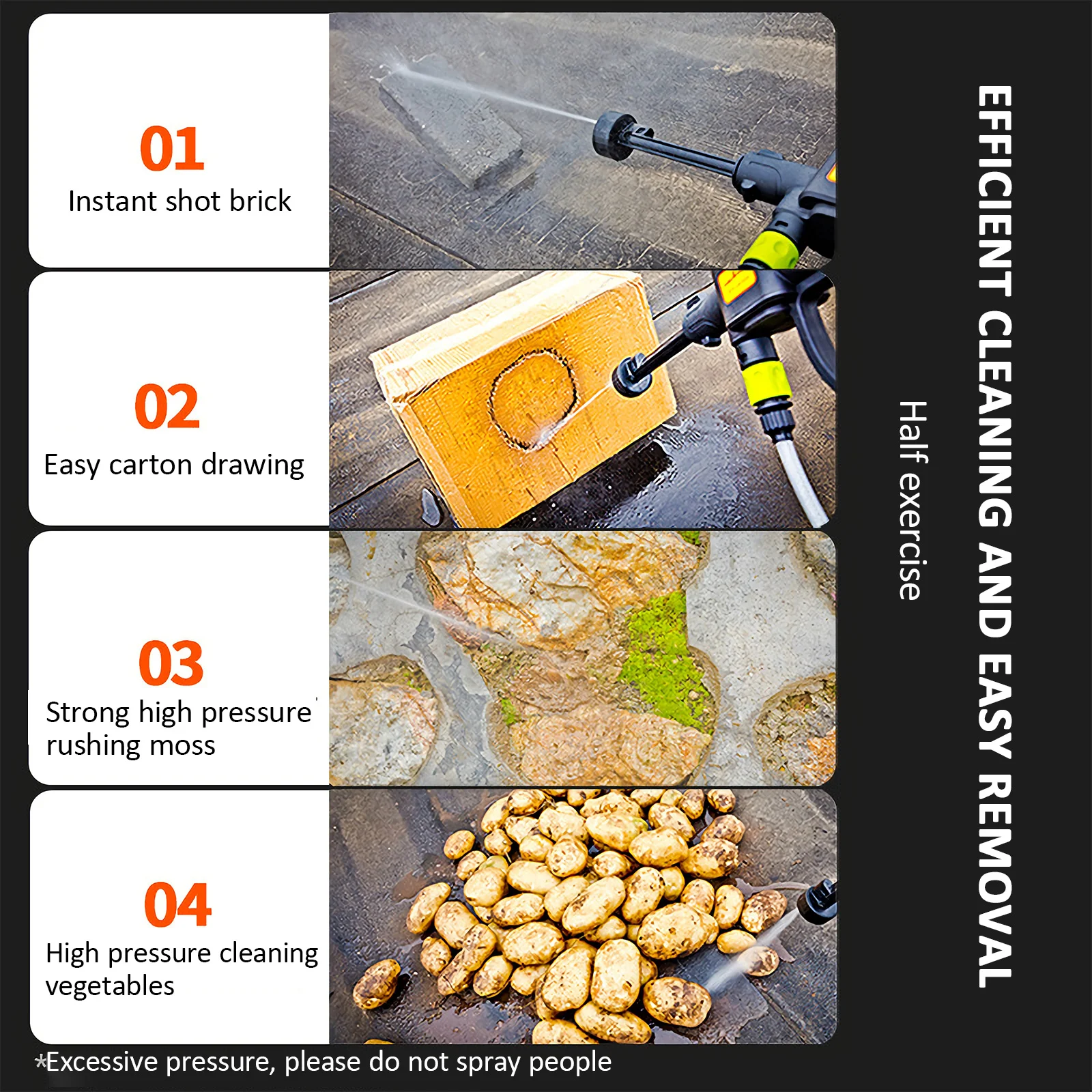 4. It is effective especially for cleaning the exterior walls of buildings, floors, baths, swimming pools, doors and windows, and corners that are difficult to clean manually. Quickly clean outdoor home surfaces, garden furniture, cars, stairs and pool dirt.