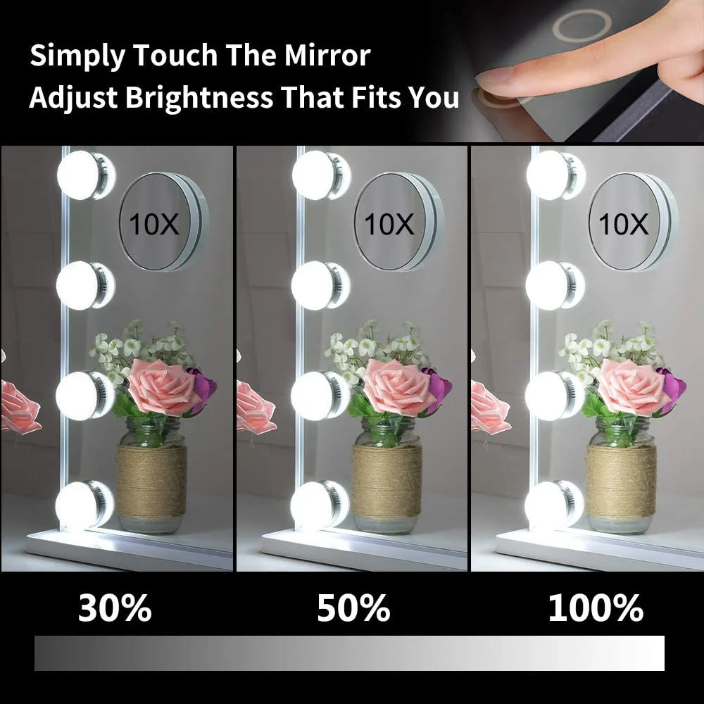- Vanity mirror for easy to use : Plug and play with the included 12V 1A adaptor. LED mirror with smart touch control and memory function.