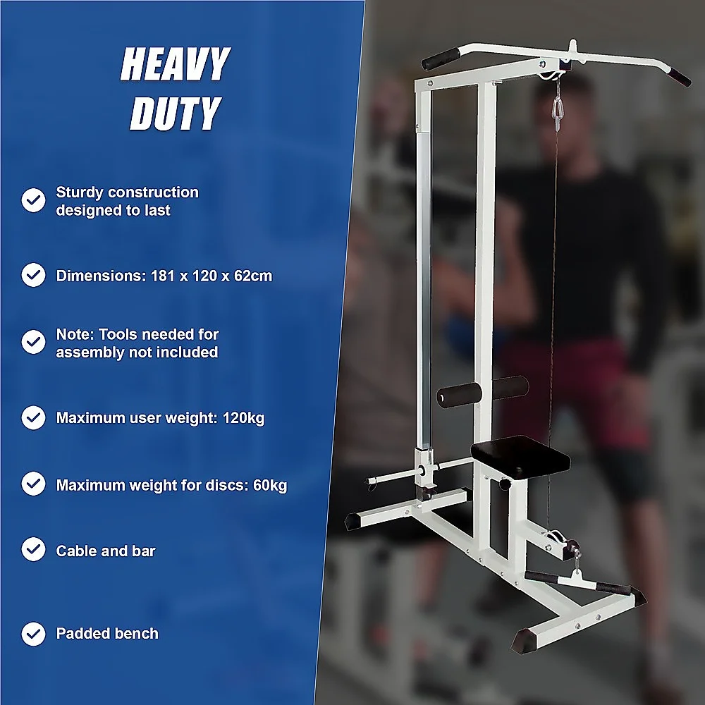 When you're serious about your fitness, but don't have a huge home gym to train in, this compact home fitness gym from Randy Travis Machinery is the perfect solution. With a padded bench that allows you to train in comfort, this gym features a cable and bar, allowing you to do pulldowns and rowing exercises right in your own home.