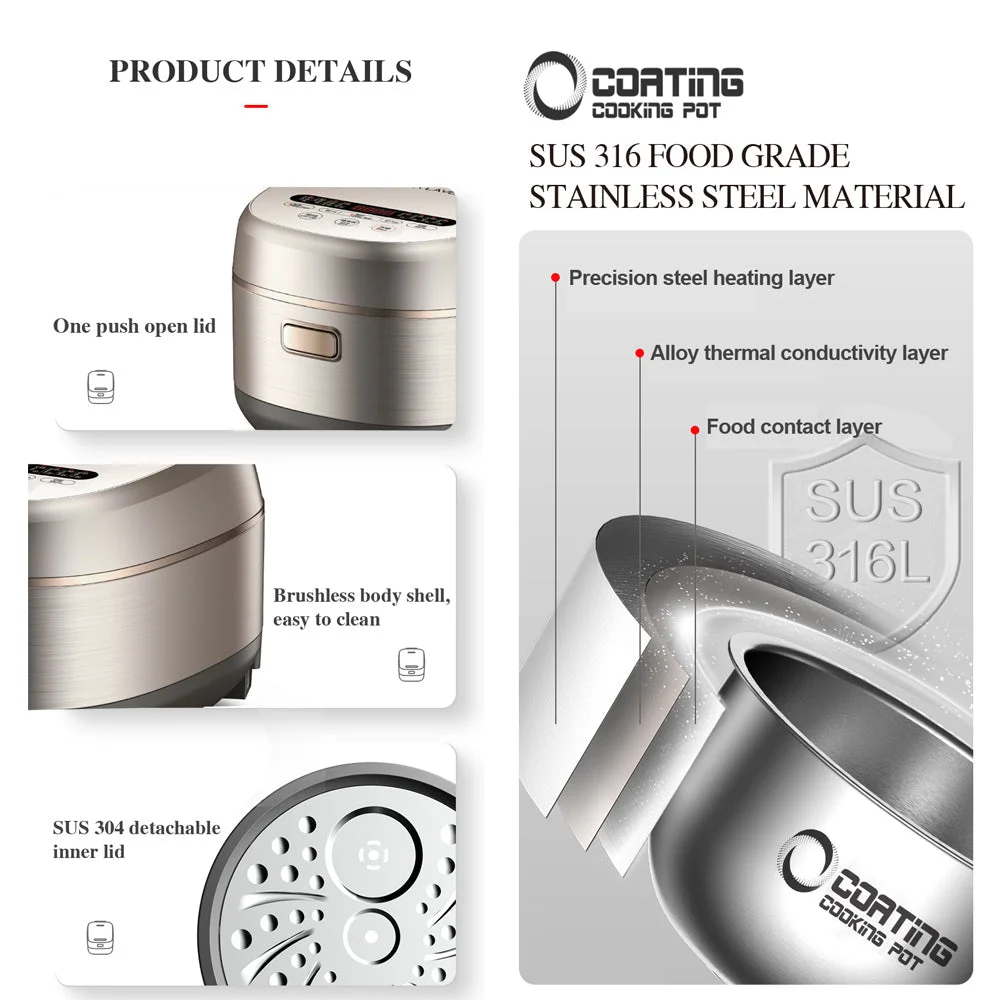 Experience cutting-edge cooking technology with our 4L Electric Rice Cooker featuring IH (Induction Heating) and a revolutionary zero coating non-stick pot. This is the Australian version, certified by SAA (Standards Association of Australia), and comes with a local one-year warranty.