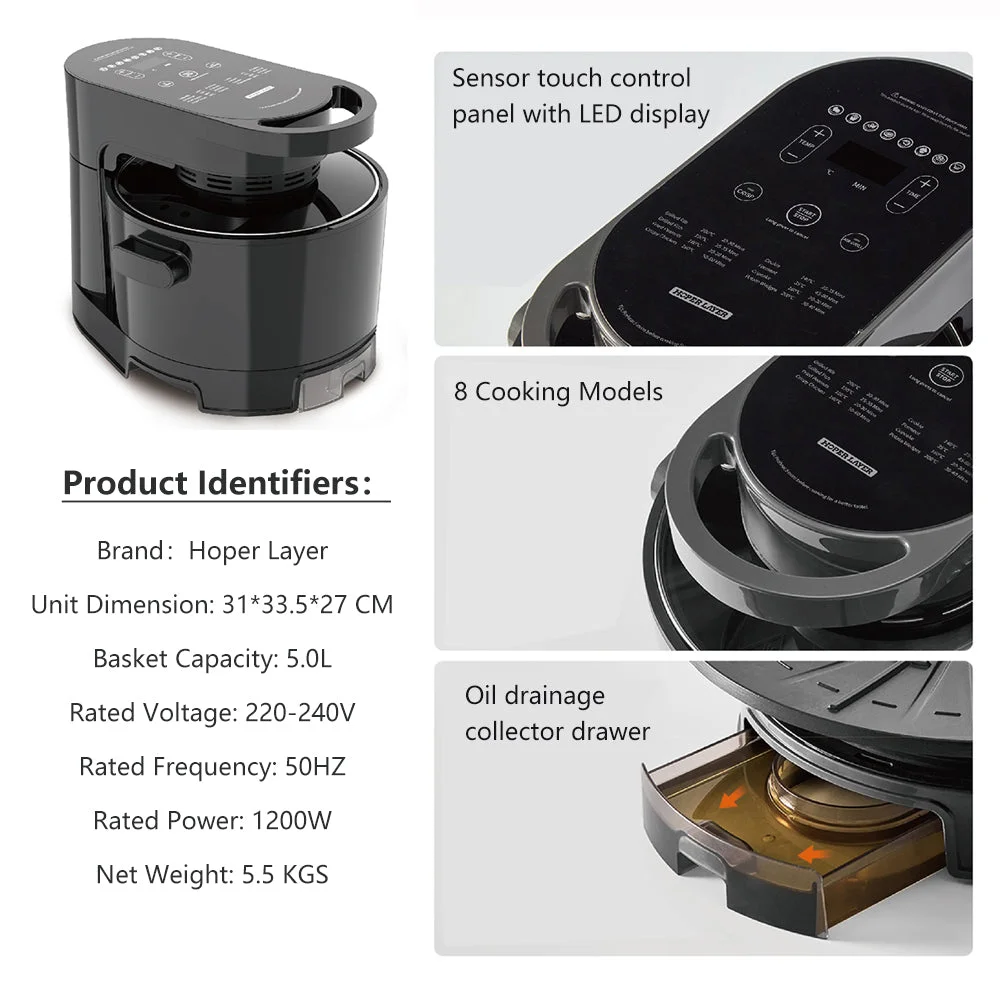- The Hoper Layer air fryer does the thinking and cooking for you with smart sensing technology; Interchangeable and multi-functional air fryer and smokeless BBQ grill.
