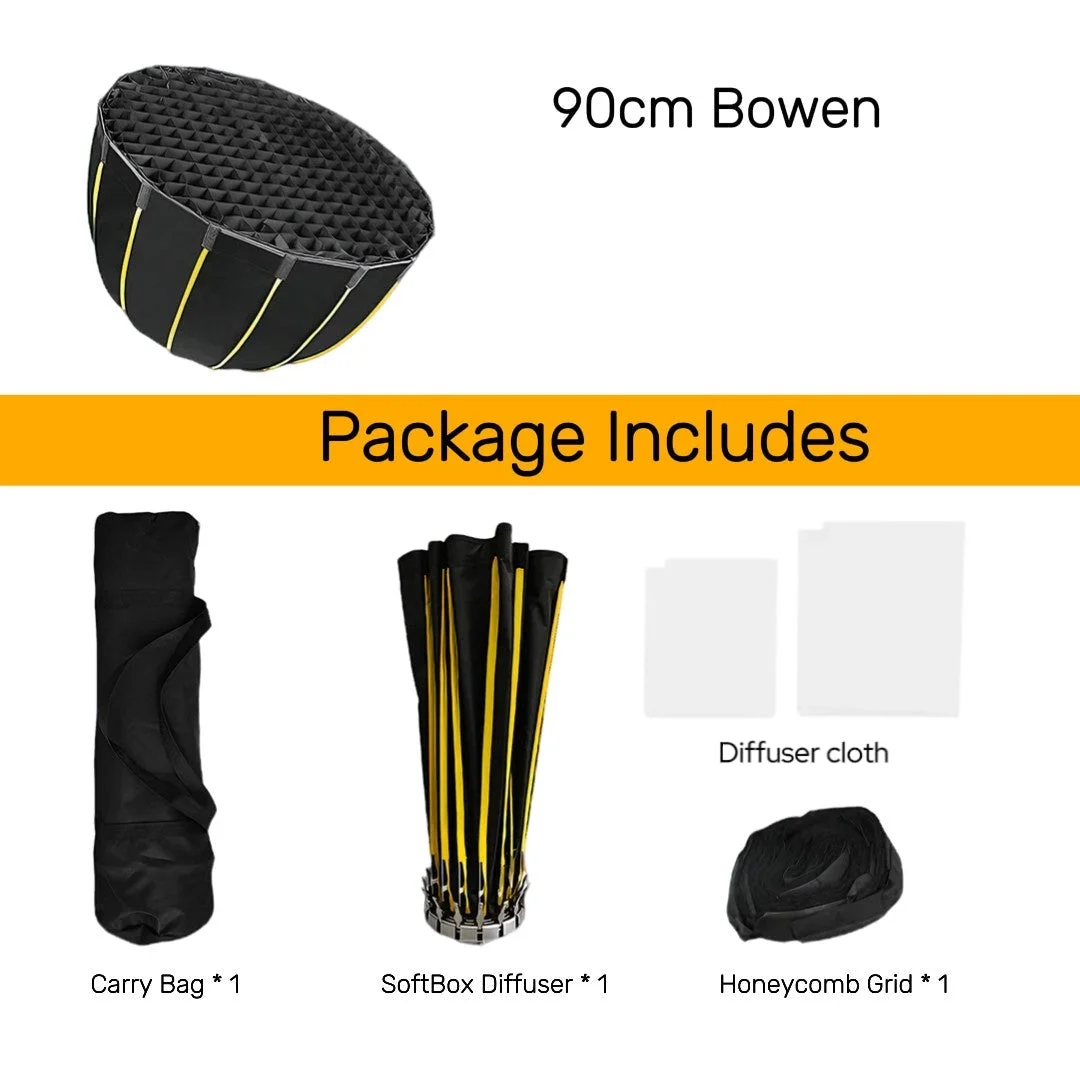 1. Deep Parabolic Design: Crafted with a deep parabolic box design, the Hridz BM-H90 Softbox functions as an oversized reflector, delivering concentrated light with soft, saturated effects. Its lightweight and smooth construction ensure reliable and enduring performance.