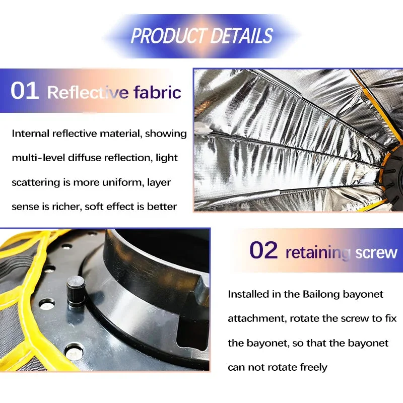 4. Reflective Silver Interior: The softbox boasts a reflective silver interior, enhancing contrast and delivering crisp, punchy light for striking imagery.