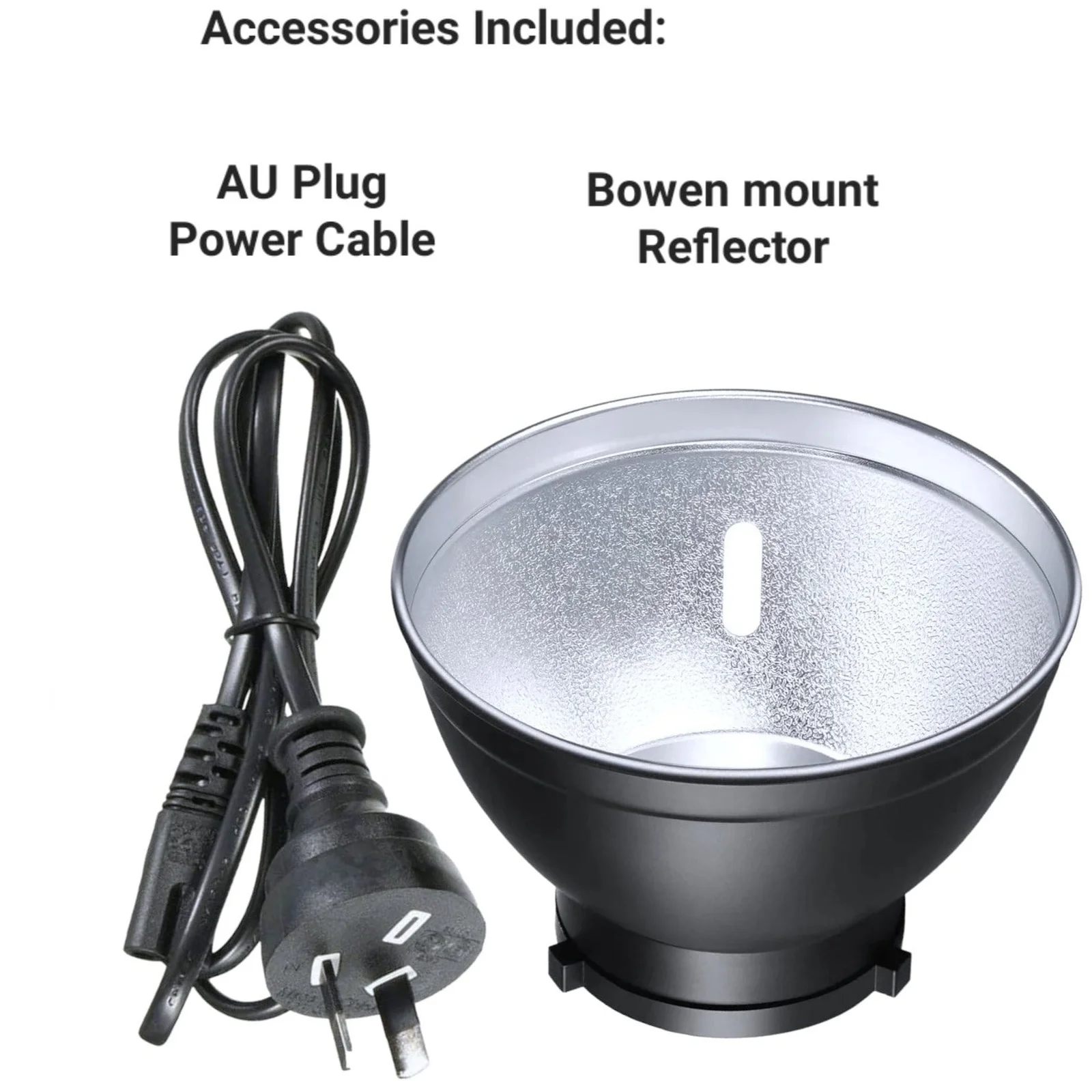 Designed with a Bowens mount, the VL100P offers compatibility with various light modifiers, expanding your creative horizons. The hassle-free setup on AC 220V with the included AU plug power cable makes it perfect for any studio environment. The comprehensive package includes the video light, Bowens mount, power cable (AU plug), and 95+ CRI Lighting – everything you need for a professional studio setup.