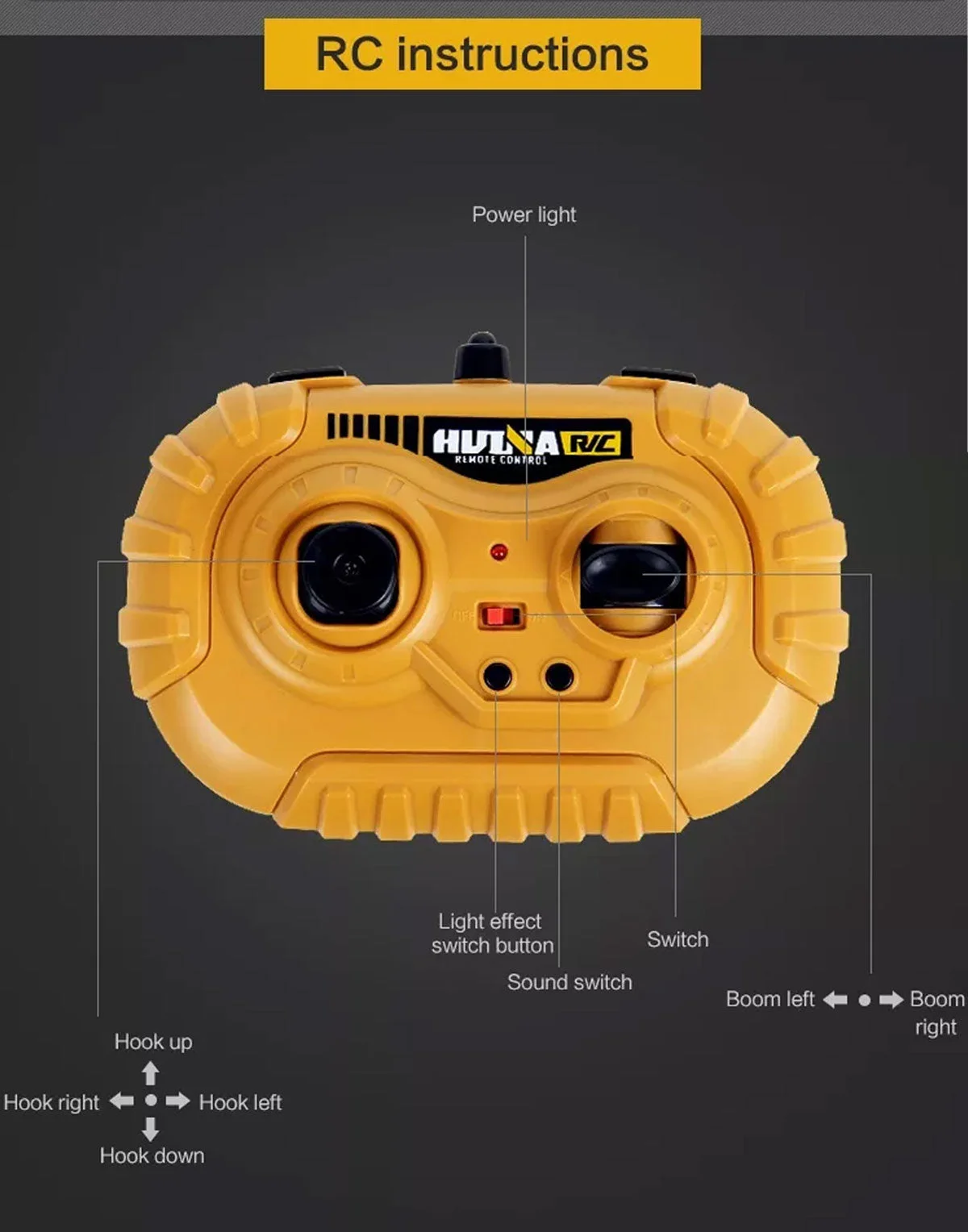 Remote control: Easily use the remote control, and the child can move the crawler crane to the right or left and raise or lower it. In addition, the construction crane compartment can be rotated on each side - to the right or left.