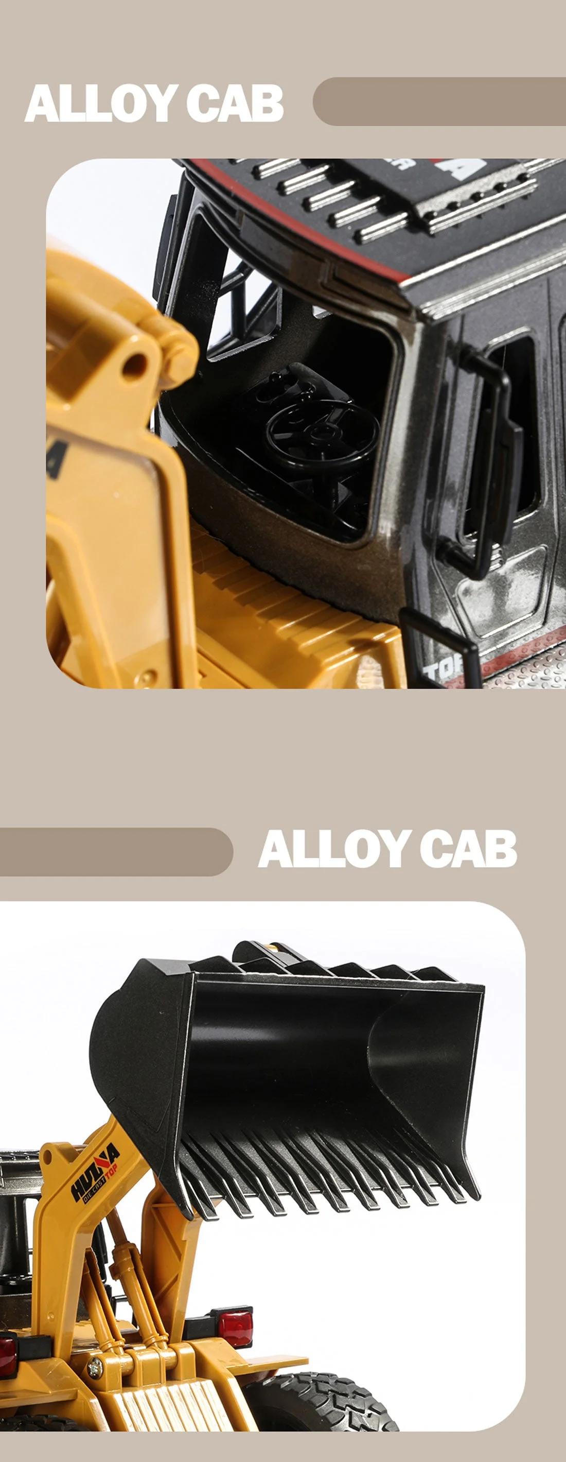 The die-cast alloy cab also features lights for the ultimate in scale realism.