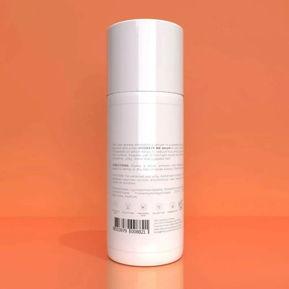 This non-greasy smoothing serum is a powerful aid for dry and split ends. HYDRATE ME serum is rich in natural Grapeseed oil, which helps reduce frizz and smooth hair surfaces. Regular use of this light serum will result in smoother, silky, more manageable hair.