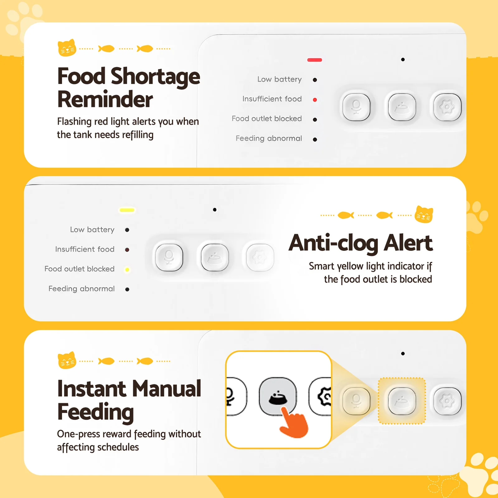 Feeding Settings: 1 - 10 meals per day, 1 - 15 portions per meal