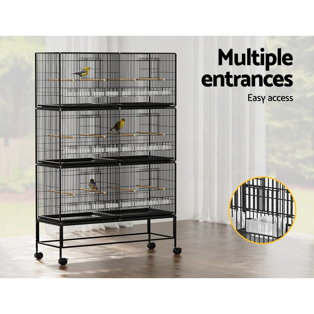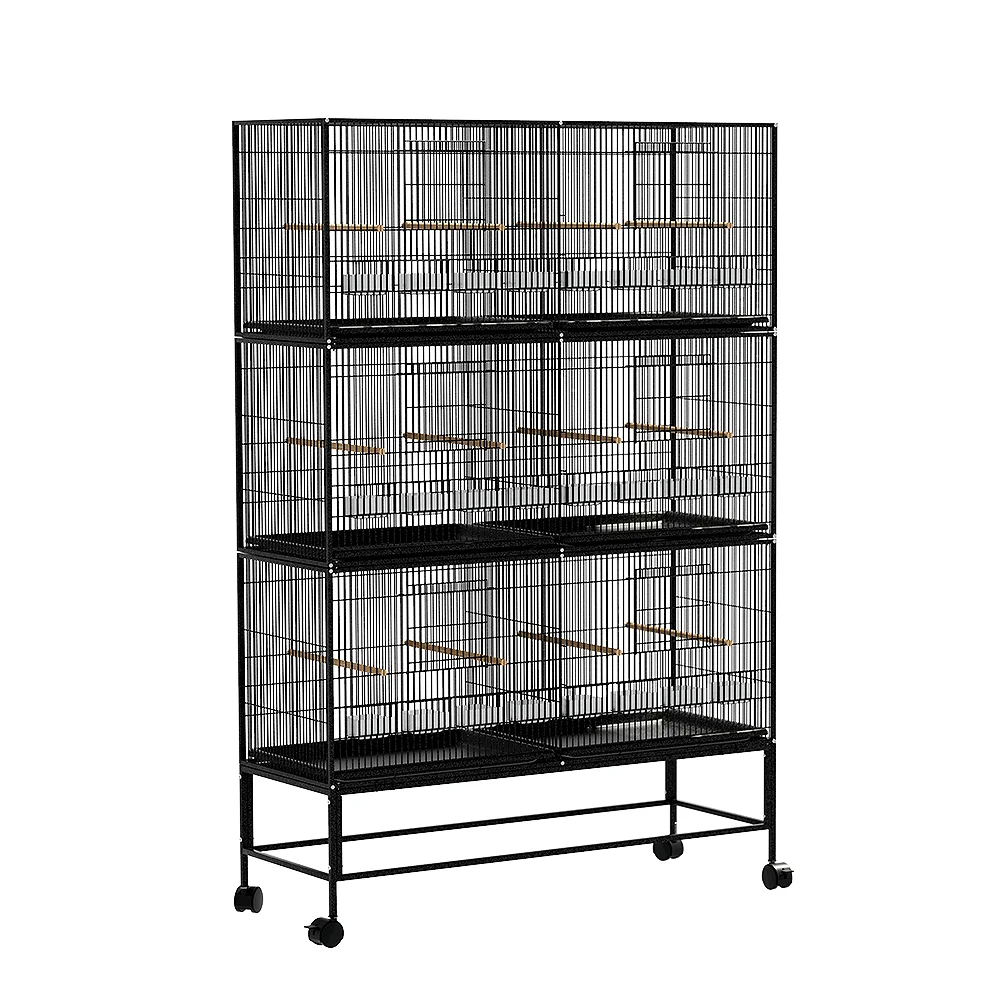 An i.Pet Bird Cage has everything you need to keep, breed and nurture your very own flock. Our expandable six-cage design is suitable for small birds and has four nesting boxes and four food and water bowls per cage, making sharing easy. Made from powder-coated iron with a galvanized finish, the cage is rust and corrosion-resistant and built to last. Twelve perches will keep your birds entertained, happy and healthy. Slide-out dividers let you customize your space for optimum growth, while slide-out trays make cleaning a breeze. The cage is supported by a detachable stand on smooth castor wheels, making moving hassle-free. Best of all, the cage is easy to assemble with no screws needed – just follow our handy assembly guide. Show your lovebirds some love and enjoy the flexibility, reliability and accessibility of the i.Pet Bird Cage.