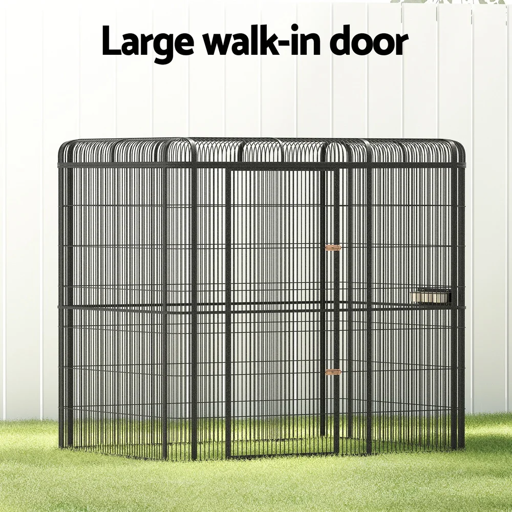 Give your large bird the space it needs to fly and thrive with the i.Pet Bird Cage. Our walk-in aviary is perfect for the care of large birds, reptiles or even as a temporary shelter for your family dog. Made from durable wrought iron with a protective coating, this cage ensures long-lasting use and resistance against rust and corrosion. The cage features a large walk-in door for easy access and simple cleaning. The swing-out feeder doors and three stainless steel food cups provide a convenient feeding solution, so you can feed your pets without entering the cage. With latched locks, your pets will be safe and secure inside the cage. The aviary is perfect for large birds like parrots, macaws, and cockatoos, offering them ample space to move around and exercise throughout the day. Give your pets the ideal home with the i.Pet Bird Cage.