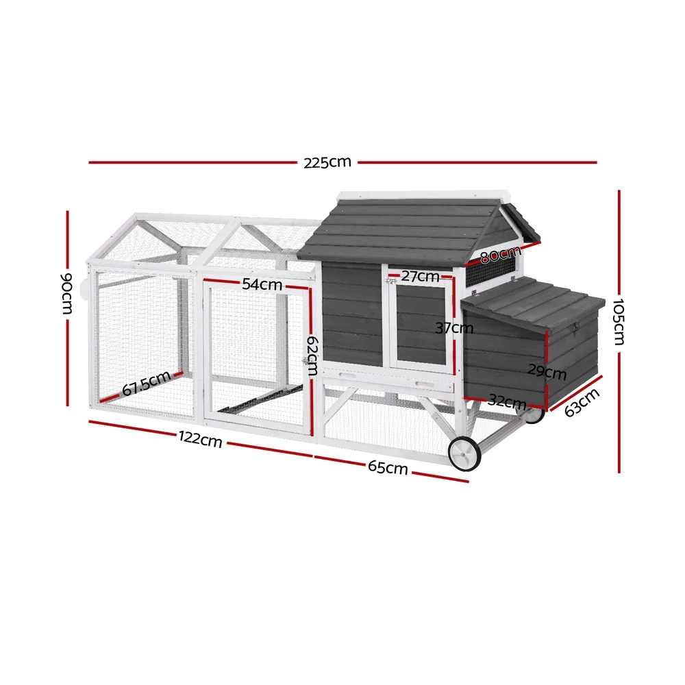 The i.Pet Chicken Coop, designed with a hatching box for easy egg collection and two wheels for portability, offers a secure and convenient home for your chickens. Crafted for durability and weather resistance, it ensures comfort and mobility.