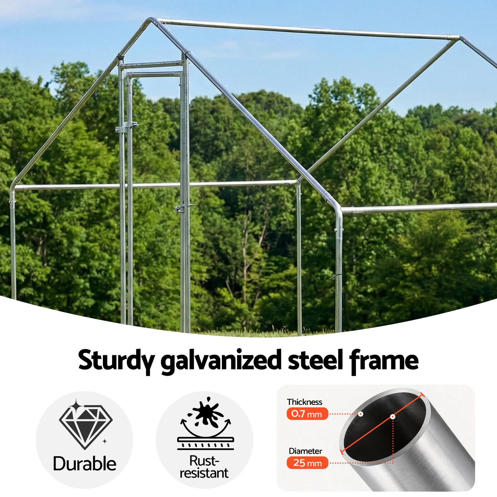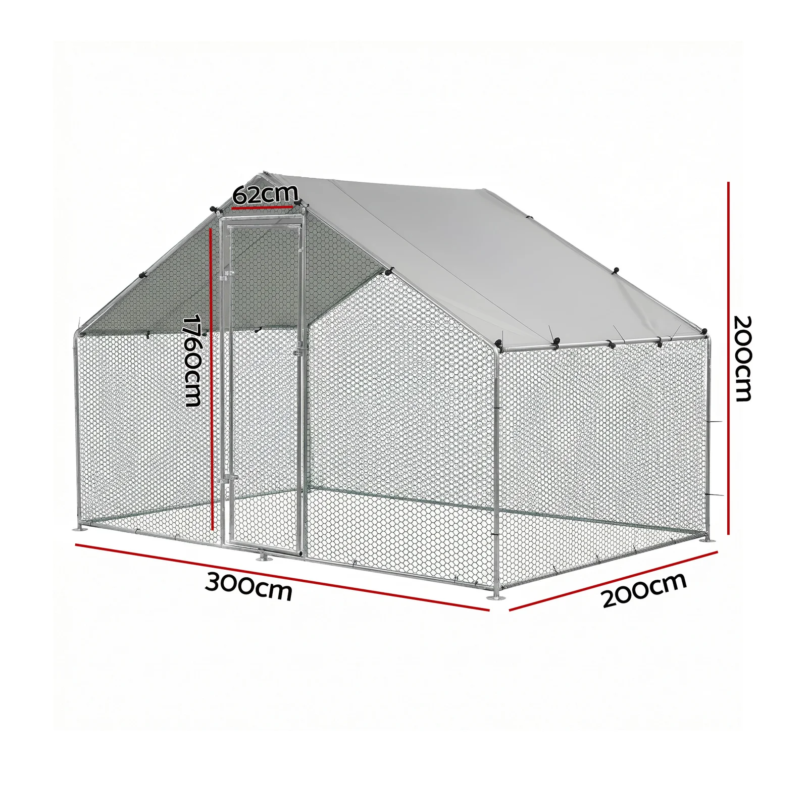 Give your backyard flock or furry friends a safe and spacious home with the i.Pet Large Outdoor Pet Enclosure. Whether you are keeping chickens, rabbits, or dogs, this 3m x 2m walk-in run provides a secure environment for exercise and play. Designed to withstand the harsh elements, it offers peace of mind for every pet owner.Built for the Aussie Outdoors: Constructed with a sturdy galvanised steel frame, this enclosure is built to last. The heavy-duty frame is complemented by durable hexagonal wire mesh, providing excellent ventilation while keeping your pets safe from unwanted visitors. To ensure maximum stability, the unit comes with ground stakes, making it perfect for backyard setups.Ultimate Comfort & Security: Protect your pets from the scorching summer sun or sudden downpours with the included 420D Oxford fabric cover. This weather-resistant canopy provides much-needed shade and shelter. For easy access, the large walk-in door features a lockable system to ensure your pets stay exactly where they belong.