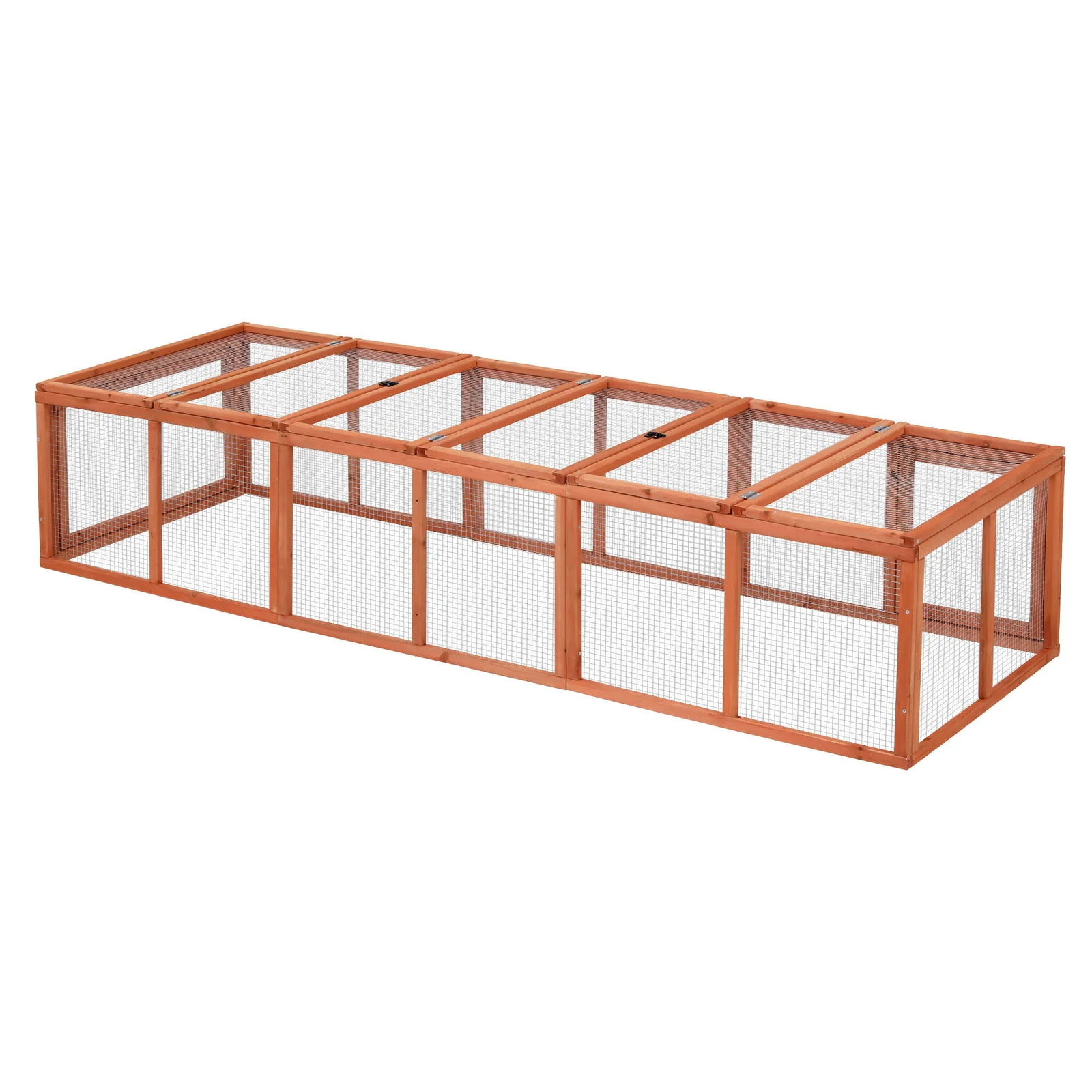 Give your feathered friends or bouncy bunnies the freedom they deserve with the i.Pet Large Outdoor Pet Run. Measuring an impressive 240cm in length, this spacious enclosure provides the perfect safe haven for your pets to stretch their legs, forage, and enjoy the fresh sunshine.Crafted from premium solid fir wood, this run is built to withstand the elements while looking great in any backyard. The galvanised wire mesh ensures superior ventilation and offers maximum protection against unwanted visitors. There are also adequate secured locks to keep the coop well protected against any predator. .Access is a breeze thanks to the large top opening and a handy side door, making cleaning and refills quick and easy. With secure locking mechanisms, you can rest easy knowing your pets are safe and sound.