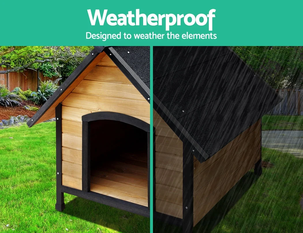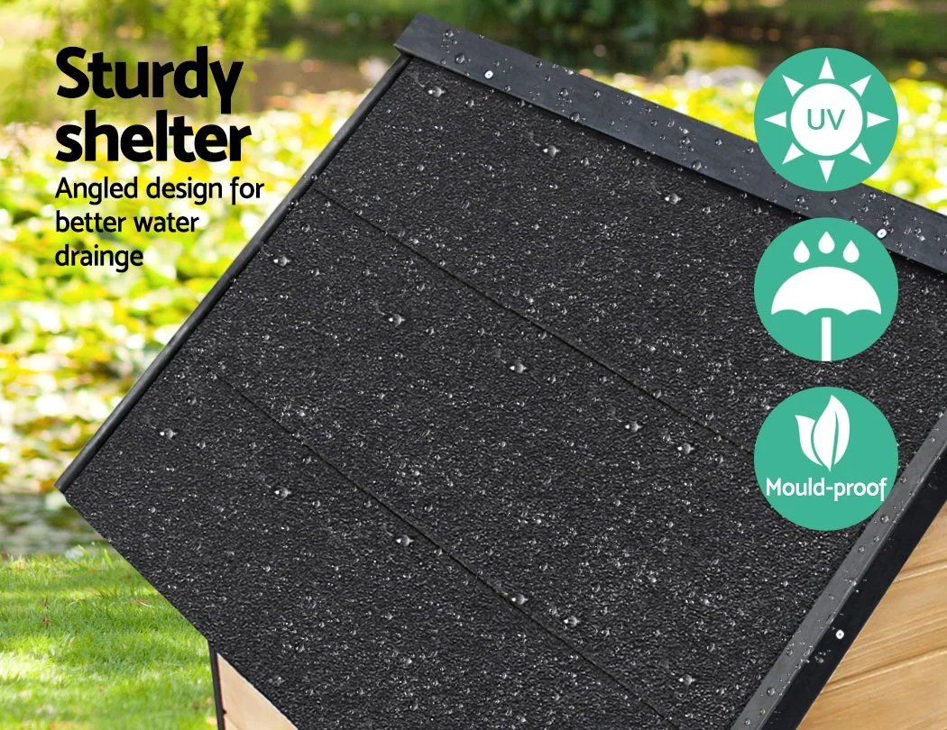 Top quality and durable, this is a pet dog house that prioritises comfort. With a fir wood construction, this dog house is designed to maximise comfort. Featuring an asphalt felt roof, it insulates your pup from the heat during summer and against the rain in winter. It is raised on small legs with rubber feet to prevent wet rot from rising to the timber. High quality, anti-termite, pest-resistant and is made of TUV approved eco-friendly materials. Architecturally designed inside and out , this will surely make your little pup bark with glee!