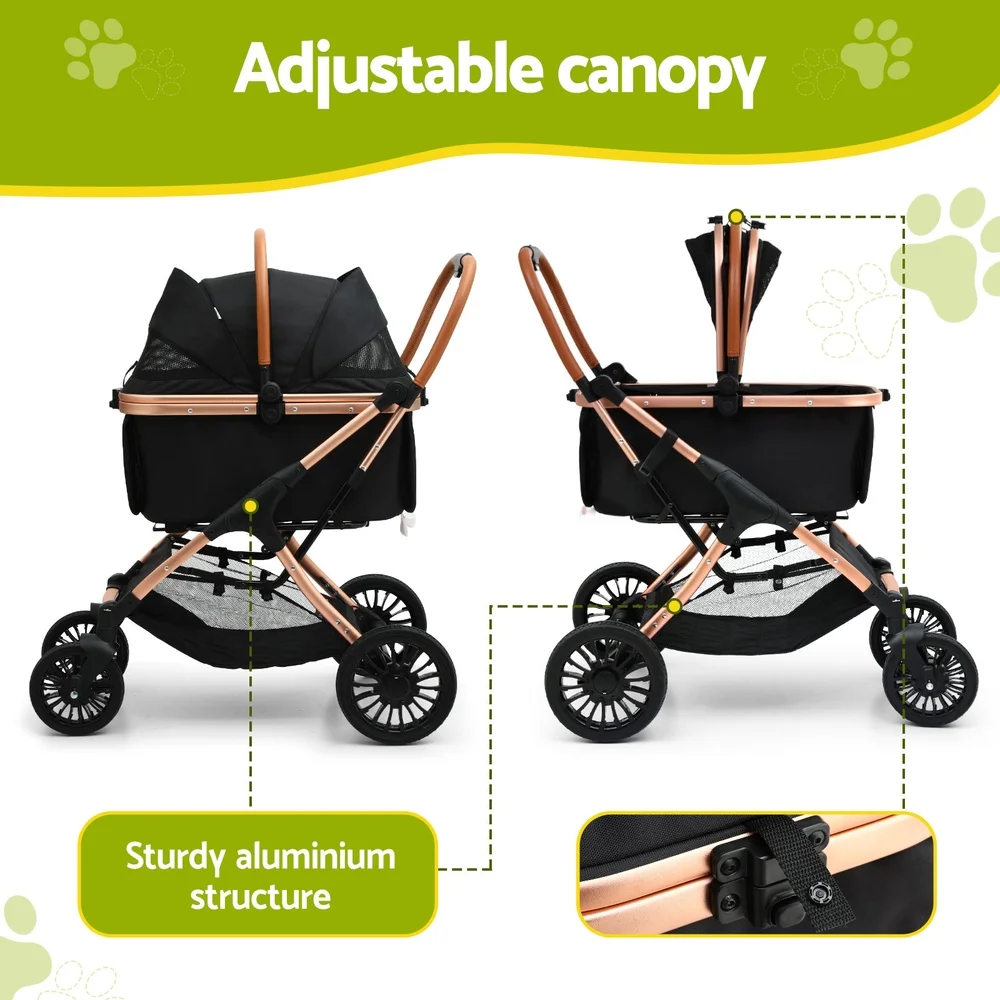 i.Pet's pet stroller is perfect to take your furry friend on strolls, especially if you're planning to take those slightly longer strolls that can get you sweating. Or it's a great accessory if your pet is suffering from mobility issues but wants to get outdoors. Featuring a spacious interior, our pet stroller can be used as a stroller, carrier, and car seat. It has adjustable front veil for UV protection, and the mesh window offers good visibility and allows proper airflow as you take your pet for a stroll. This pet stroller is made from high-quality 600D oxford and linen fabric with durable aluminium alloy frame and PU wheels that ensures sturdiness and durability for longlasting use. It comes with 360˚ rotatable front wheels and lockable rear wheels for smooth movement and safety, and the built-in safety belt keeps your pets safe. Our pet stroller is quite spacious that ensures your pet's comfort and comes with a removable cushion for additional support. It also has a large storage basket underneath that offers ample space to store nitty-gritty stuff. Furthermore, this water-resistant pet stroller is easy to install and features a one-step fold mechanism that allows easy storage, and the foam handle makes it extremely comfortable for you as you tour them at the park or around the neighbourhood. Without any hesitation, shop our reliable and durable i.Pet's pet stroller for your furry companions.