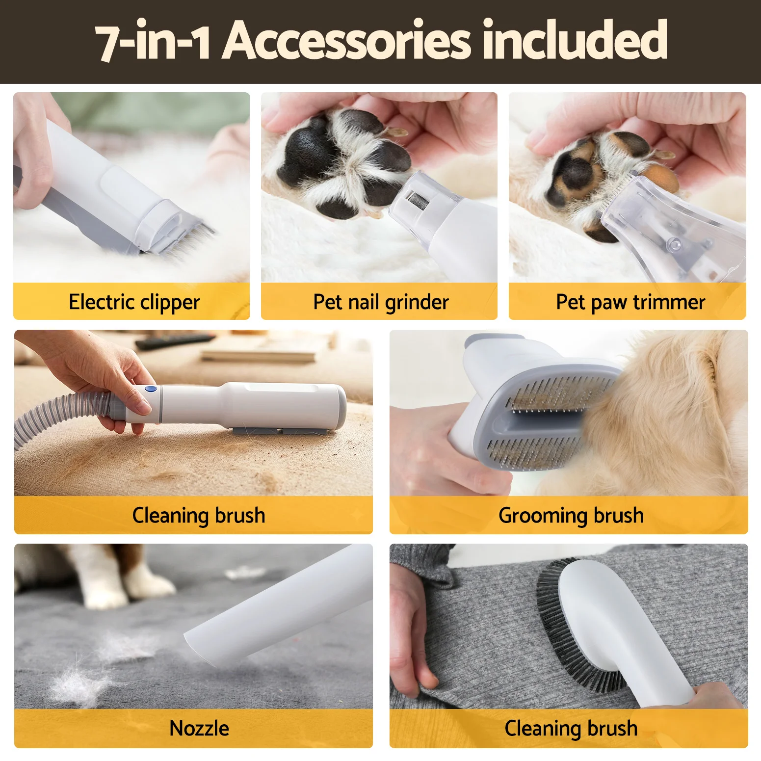 Style your furry friend with ease right at home with the iPet Hair Dryer. This 7-in-1 grooming tool features a powerful vacuum and three adjustable levels, making it easy to style, dry, and clean your pet in one go. With four comfort trimming combs, you'll have everything you need to ensure a precise and gentle trim. Plus, it operates at a quieter grooming noise level of less than 73dB, keeping your pet calm throughout the process.