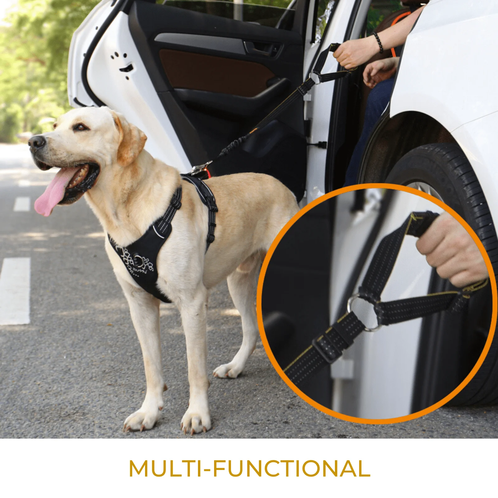 Unlike some dog seat belts, this one not only keeps your pet confined to one area but also puts their safety first. An elastic buffer design prevents the belt from unnecessarily pulling on your pooch during sudden braking or sharp turns. The seat belt gives slightly, which prevents it from chocking your dog while also keeping them firmly on their side of the car. This belt is even dual-purpose allowing you to use it inside the car as a seat belt and outside the car as a dog leash without�having to make any adjustments.�