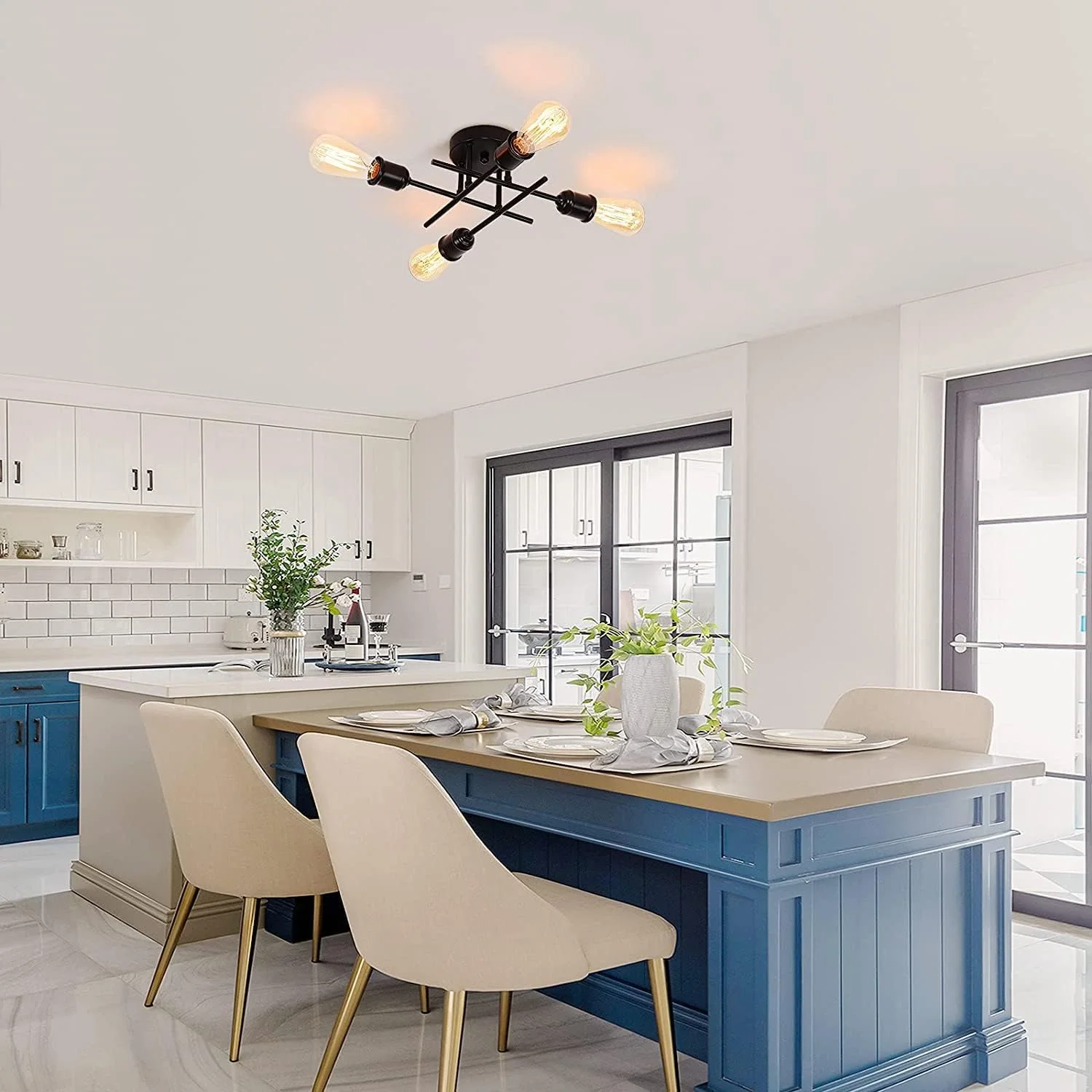 - This modern sputnik semi mount ceiling light fixture is sure to meet your lighting needs. Compatible with E27 bulbs, up to 60W max, including incandescent, LED, CFL, halogen, or color-changing bulbs (not included). For an extra vintage look, Home Lighting recommends using an Edison bulb. Voltage: 220V-240V.