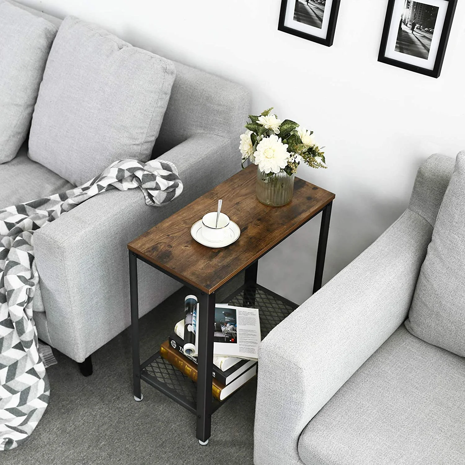 A Feel-Good Ambience: A frame made of black steel meets engineered-wood material in rustic style. Add a good book and snacks to this side table alongside a cosy couch - and you'll create the perfect atmosphere to relax after a busy day with little effort