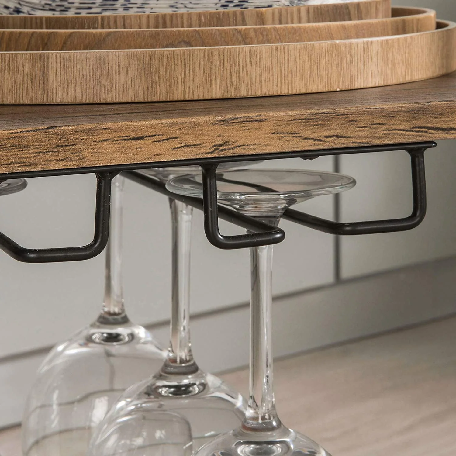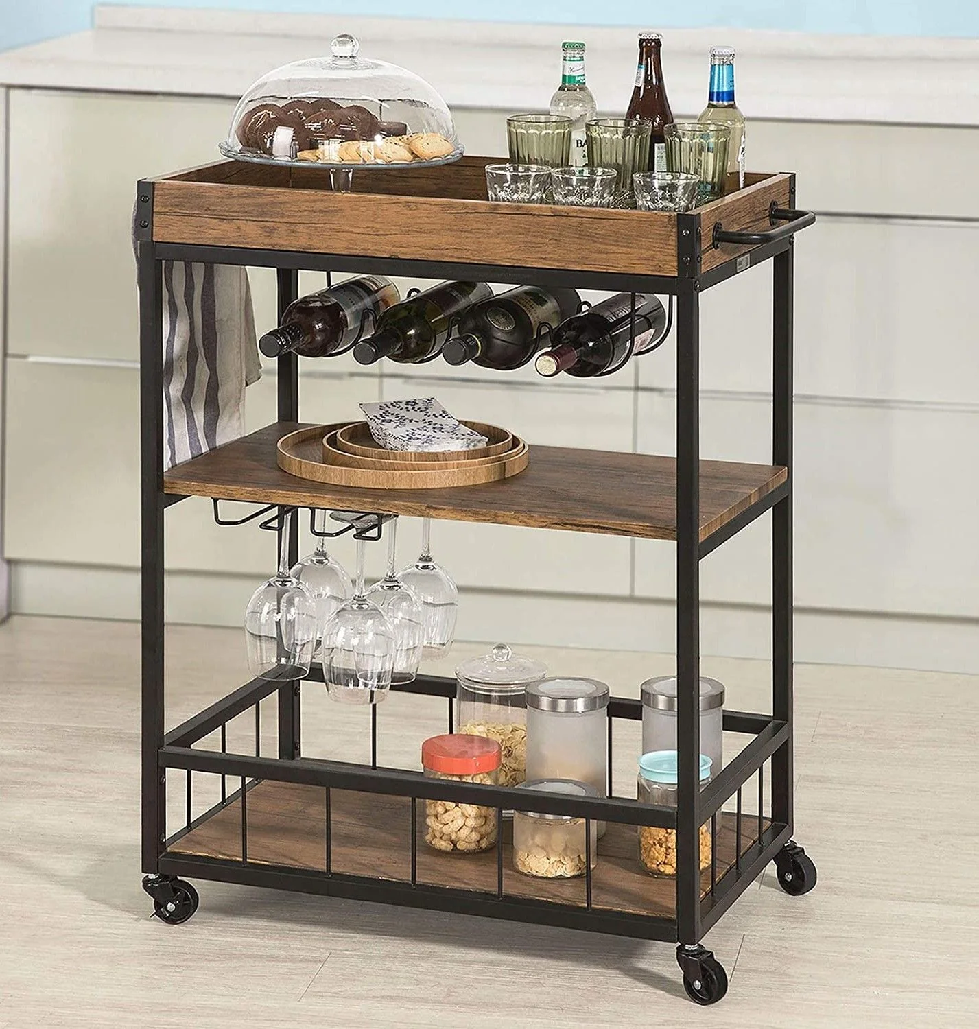 Industrial Vintage Style Wood Metal 3 Tiers Kitchen Serving Trolley with Wine Rack (Brown)