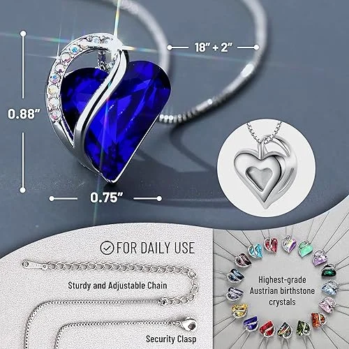 Infinity Love Heart Necklace, Birthstone Necklace for Women, Jewelry for Women with Healing Crystals, Allergym Free Pendant Necklace-09b-September-Sapphire Blue