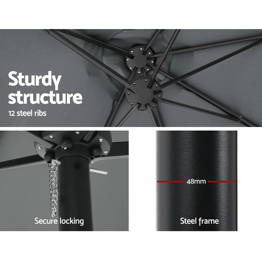 Soak up the sun, while staying cool under our Instahut centre post umbrella. Its steel supports an Dodecagon UV50+ canopy, ideal for the peak of summer. Made of water-resistant and wear-resistant polyester, it stands up to all sunny adventures. A water-fillable, portable base ensures beach-to-backyard versatility, while the washable canopy ensures freshness. Sunshine and shade, harmoniously blended for your summer escapades. Note: Umbrella base not included.
