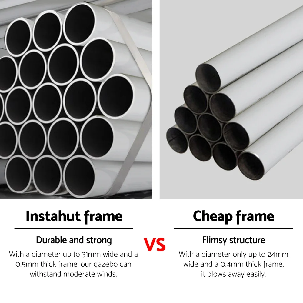 It's your big day and everything needs to be perfect, including the comfort of your guests. That's where Instahut comes to the rescue. The ideal solution for instant cover outdoors, our 300cm by 900cm wedding gazebo will ensure your guests are protected come rain or shine. Made from strong powder-coated metal tubing and covered with a 100PE UV and water-resistant canopy, the gazebo is built to last in a variety of weather conditions. With its quick and convenient Velcro attachments, you can set the gazebo up in minutes. The bonus carry bag allows you to store it away in your car boot, van, trailer, garage or shed until just the right moment. It also comes with bonus ropes and pegs so you can rest assured your canopy will last throughout the event. It's not just suitable for weddings – the gazebo is suitable for markets, sporting events, camping, yard sales, school events and trade shows. Enjoy the outdoors to the fullest with an Instahut Wedding Gazebo.