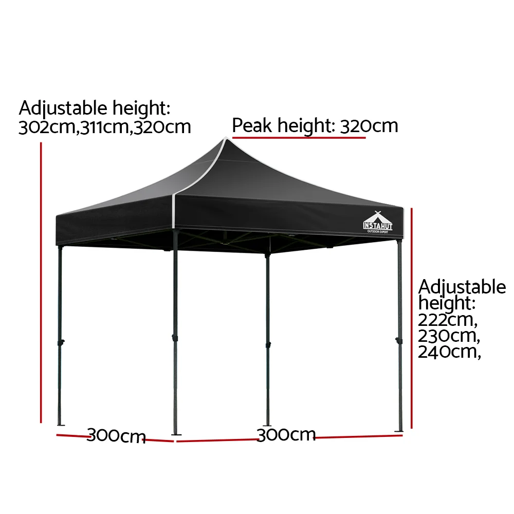The INSTAHUT gazebo has 3 adjustable height levels to suit different height needs. It is ideal for markets, sporting events, camping, garage and yard sales, school events, trade shows and many more.