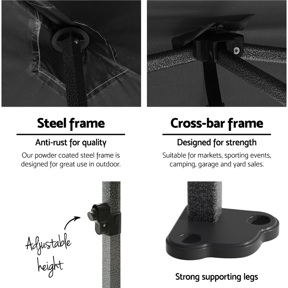 Featuring high density, long lasting PU coating oxford fabric with effective UV and water repellent treatments, this INSTAHUT 3X3 Pop Up Gazebo provides a lovely ground and canopy coverage of 300 x 300cm. It is perfect for all your upcoming outdoor activities, as a sunshade station as well as a shelter for unexpected rains.