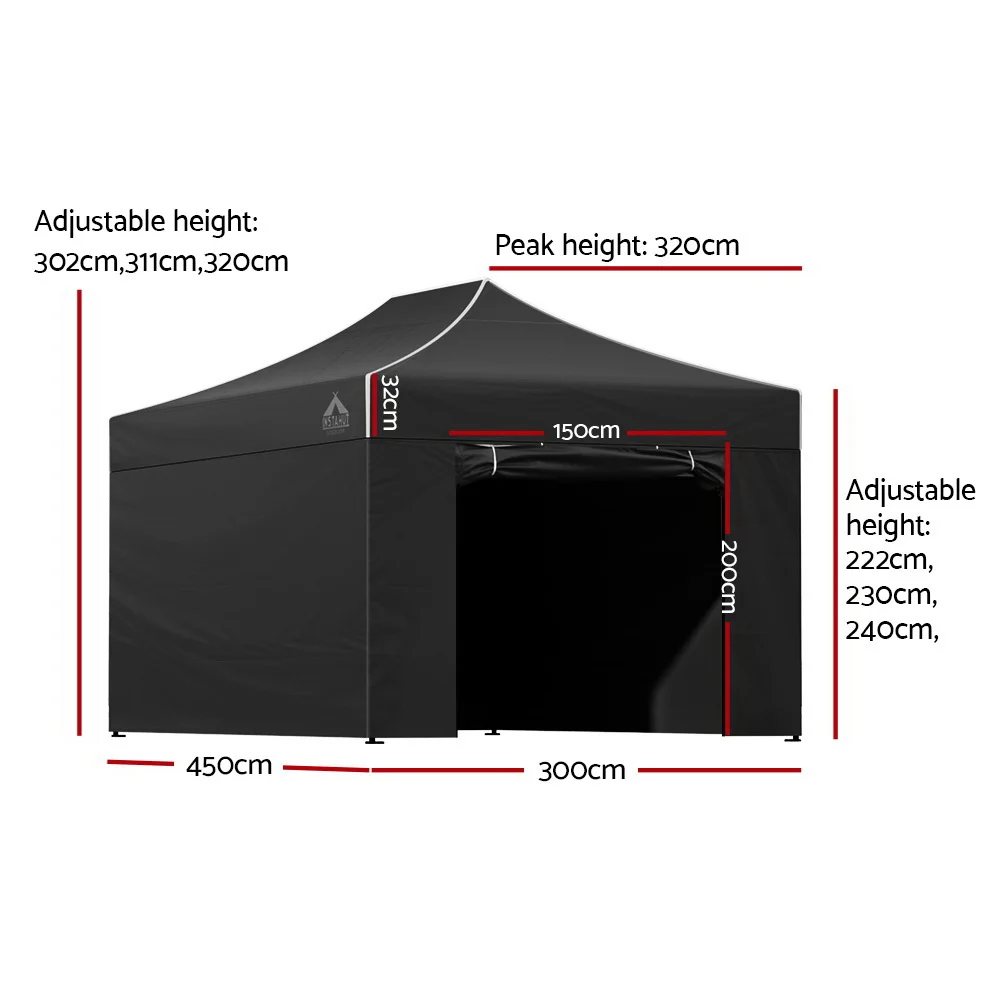 The INSTAHUT gazebo has 3 adjustable height levels to suit different height needs. It is ideal for markets, sporting events, camping, garage and yard sales, school events, trade shows and many more.