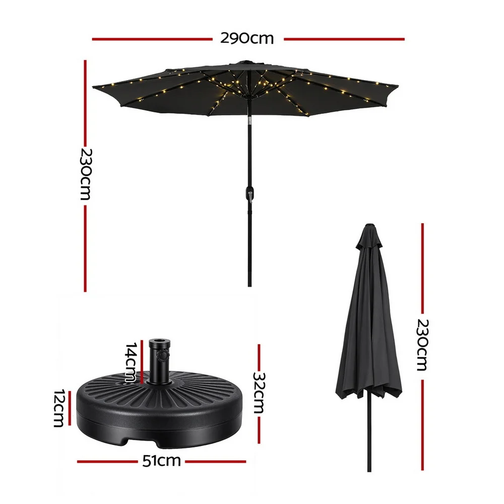 Our Instahut Outdoor Umbrella merges elegance with durability. Featuring LED-lit ribs for evening ambiance and an octagonal polyester canopy for sun protection. Heavy-duty steel frame with 8 ribs ensures stability, while the adjustable tilt mechanism delivers precise shading. Water-resistant fabric withstands weather elements. Effortless manual crank operation simplifies setup—perfect for patios, gardens, or beach retreats.