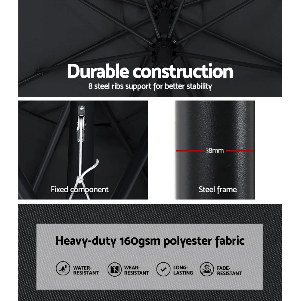 Soak up the sun, while staying cool under our Instahut centre post umbrella. Its steel supports an Octagon UV50+ canopy, ideal for the peak of summer. Made of water-resistant and wear-resistant polyester, it stands up to all sunny adventures. A water-fillable, portable base ensures beach-to-backyard versatility, while the washable canopy ensures freshness. Sunshine and shade, harmoniously blended for your summer escapades.