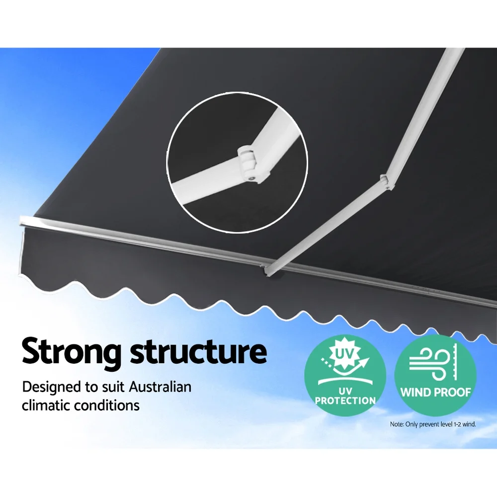 Instahut Retractable Folding Arm Awning Manual Sunshade 3Mx2.5M Green White