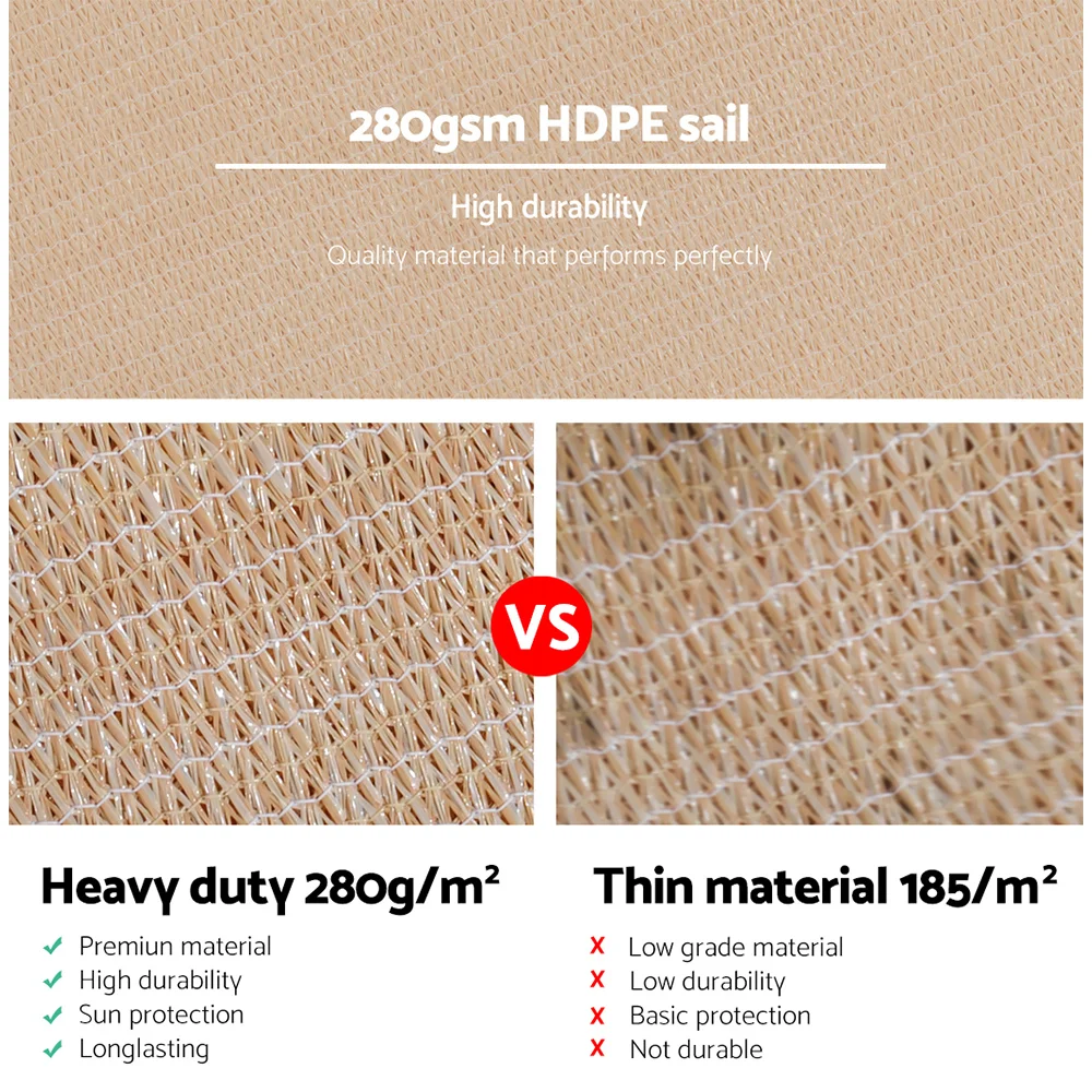 Designed to be a permanent covering, our Shade Sail is made from highly breathable 280g/m² commercial grade 100% polyethylene fabric. This allows cooling air to pass through and help keep the under shade areas well ventilated. The material also blocks up to 98% of harmful UV rays and is all-weather proof to suit Australian climatic conditions. Plus, the material is further enhanced with Americhem UV-resistant additive from the USA to prolong its UV protection effectiveness.